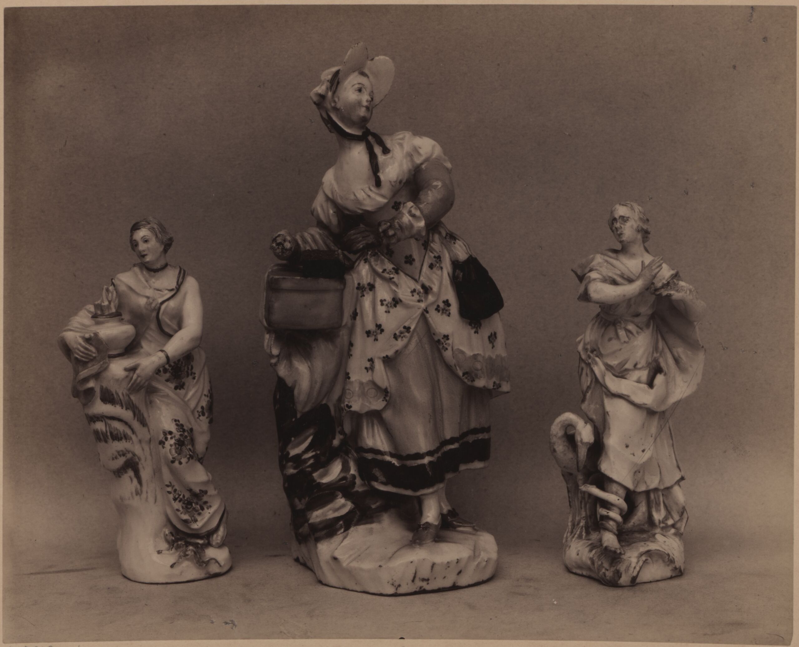 Fotografie, Fotografie dreier Porzellan-Figuren von Frauen, von der Kaiserlichen Porzellanmanufaktur Wien um 1745, Kaiserlich-königliche Porzellanmanufaktur Wien, MAK Inv.nr. KI 7577-69