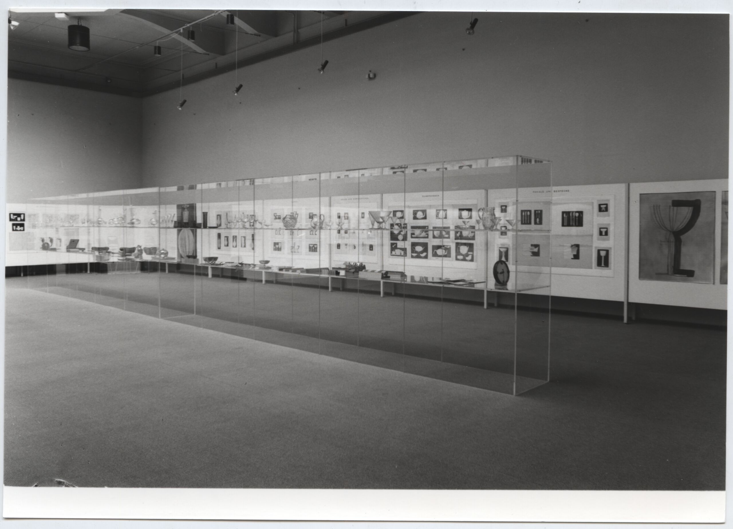 - Fotografie einer Ausstellungsansicht der Ausstellung "Oswald Haerdtl 1899-1959" im Österreichischen Museum für angewandte Kunst 1978 (vom Bearbeiter vergebener Titel)