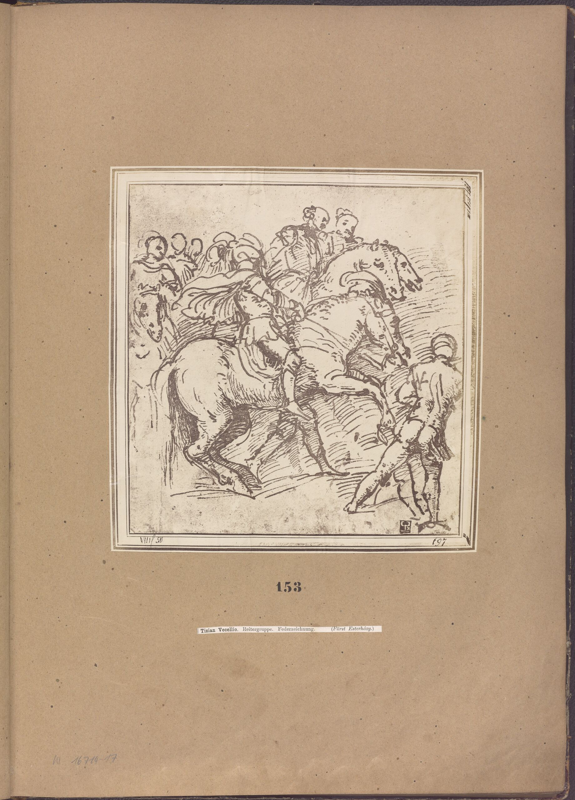 - Text am Objekt: Tizian Vecellio. Reitergruppe. Federzeichnung. (Fürst Esterházy.)