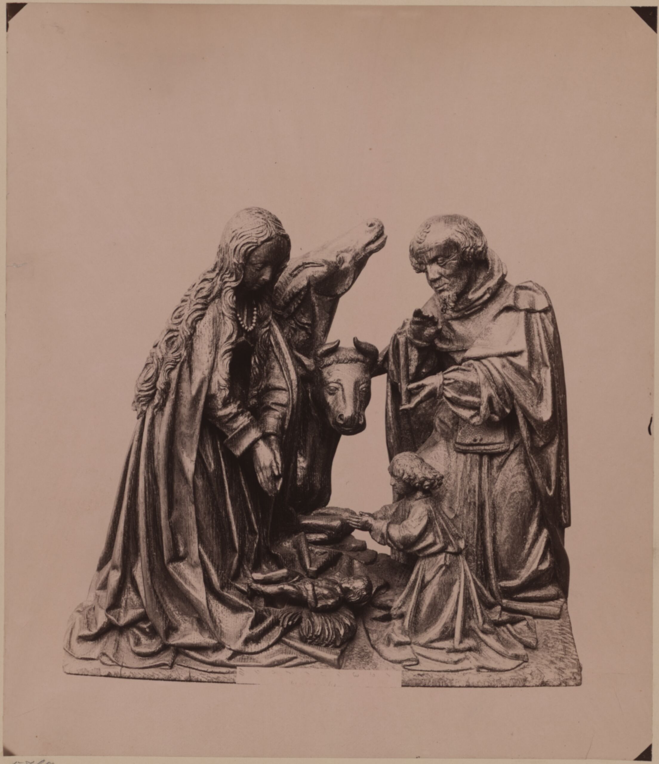 Fotografie, Fotografie einer Holz-Figurengruppe der Geburt Christi, aus dem 16. Jh., Victor Angerer, MAK Inv.nr. KI 5769-96