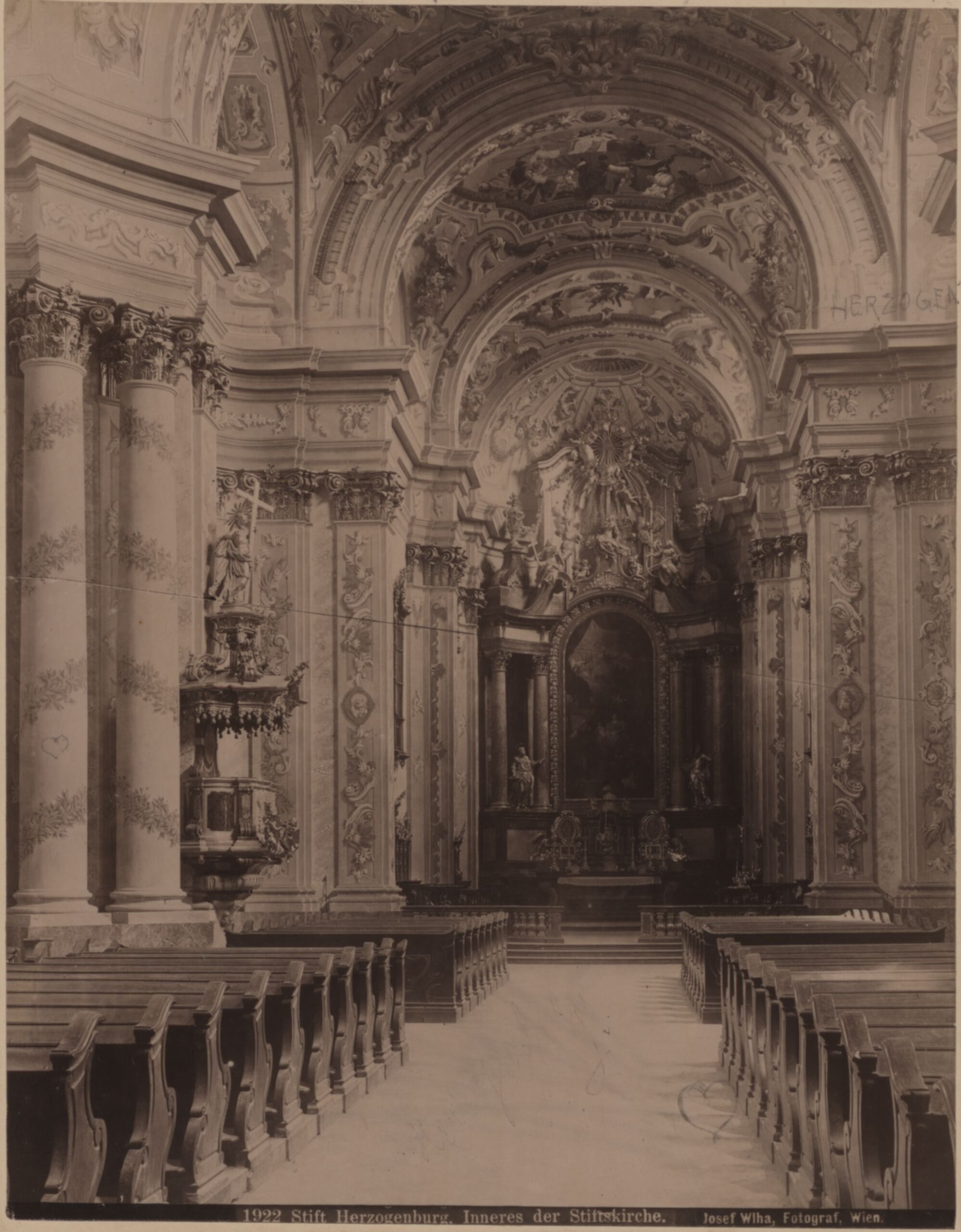 - Text am Objekt (mittig unten) : 1922 Stift Herzogenburg, Inneres der Stiftskirche. / Josef Wlha, Fotograf, Wien.