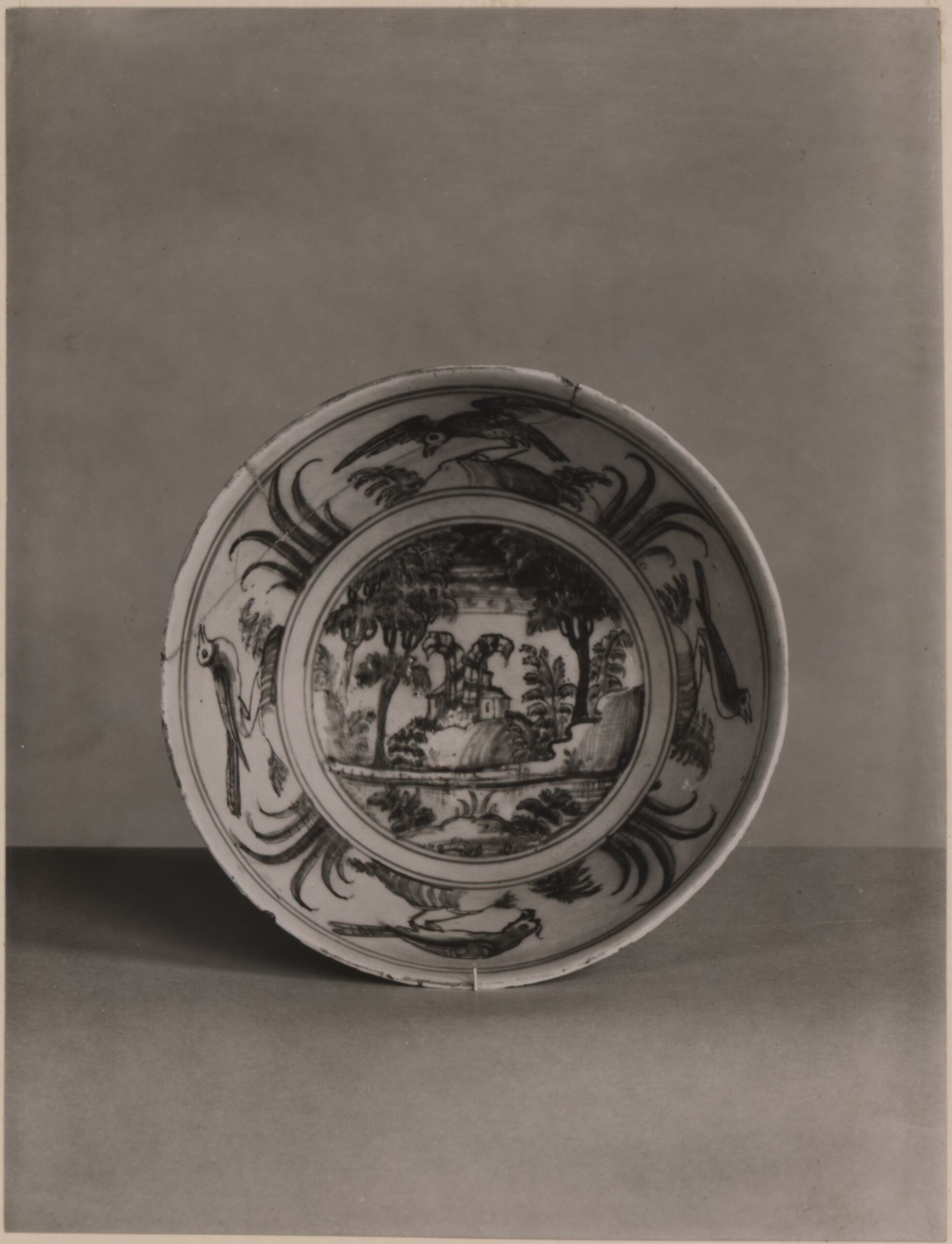 Fotografie, Fotografie einer italienischen Porzellan-Schale mit Landschaftsdarstellung, 1627, Anonym, MAK Inv.nr. KI 8337-1