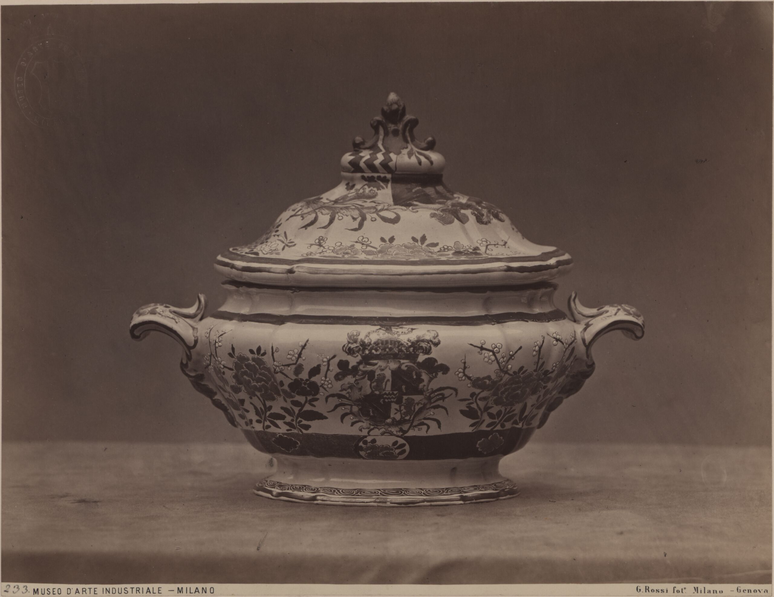 Fotografie, Fotografie einer Majolika-Suppenterrine des 18. Jahrhunderts aus Mailand, Giulio Rossi, MAK Inv.nr. KI 5243-13