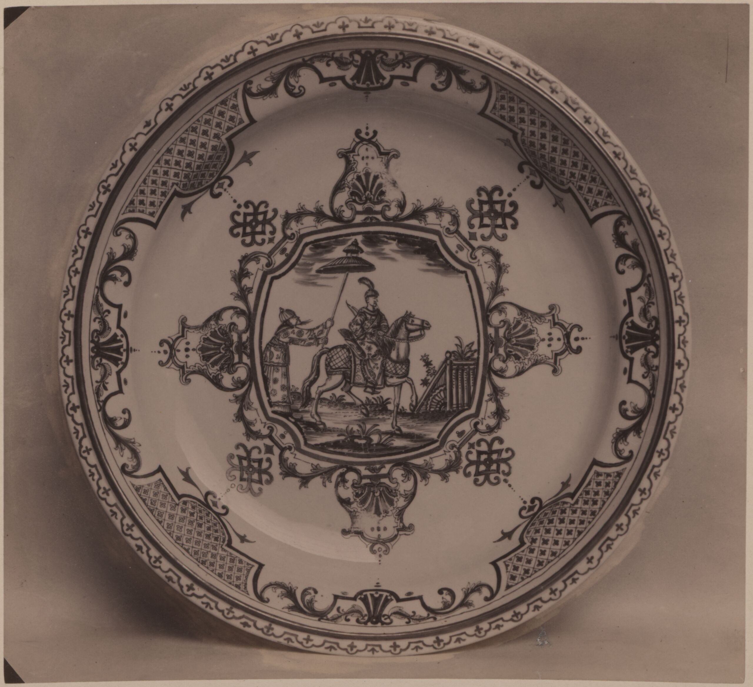 Fotografie, Fotografie einer Porzellan-Schüssel mit Chinoiserien in Schwarzlotmalerei und Gold, vom Anfang des 18. Jh., Wilhelm Gmeiner, MAK Inv.nr. KI 7753-4