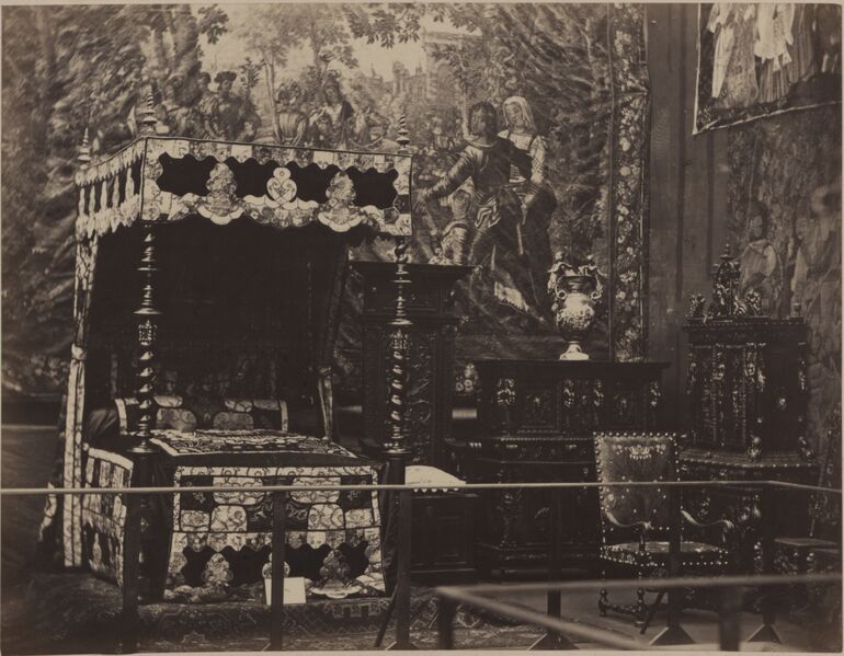 - Text am Objekt: [Untersatzkarton, mittig, gedruckt]: L'ART ANCIEN / UNION CENTRALE DES BEAUX ARTS APPLIQUÉS A L'INDUSTRIE / EXPOSITION DE 1865. / FRANCK PHOT. / 18. Rue Vivienne PARIS. [Untersatzkarton, links, aufgeklebt]: MUSÉE RÉTROSPECTIF / Bahut / XVIe siecle. / Appartenant à M. RÉCAPPÉ. [Untersatzkarton, rechts]: Französische Truhe des 16. Jahrhunderts