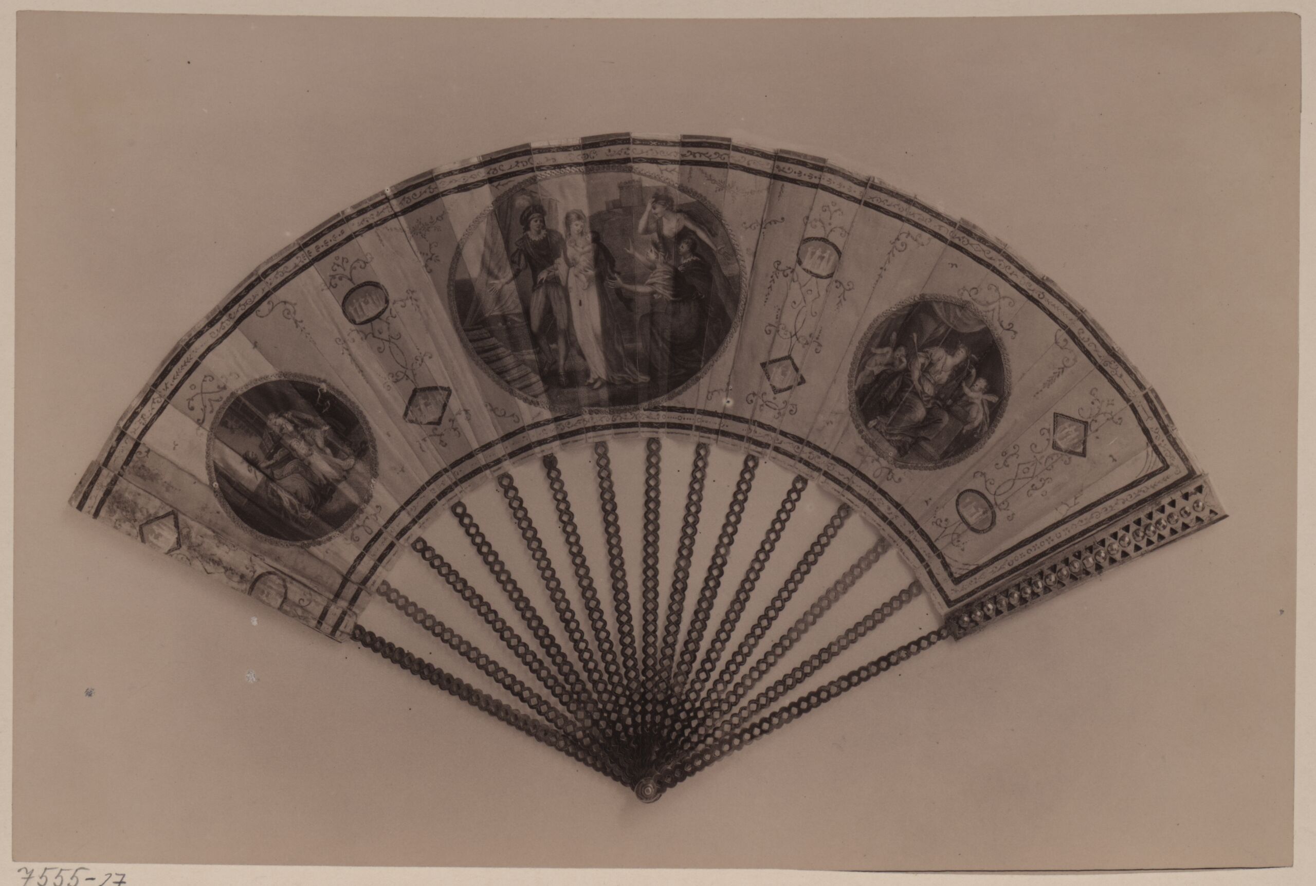 Fotografie, Fotografie eines bemalten Fächers aus Elfenbein und Metallstäben, Wilhelm Gmeiner, MAK Inv.nr. KI 7555-27
