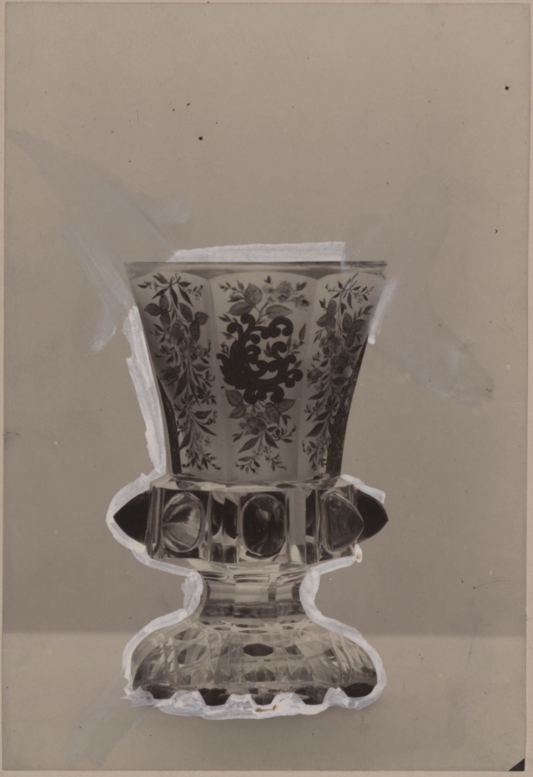 Fotografie, Fotografie eines bemalten Trinkglases mit Blumenornamenten, Anonym, MAK Inv.nr. KI 9564-27