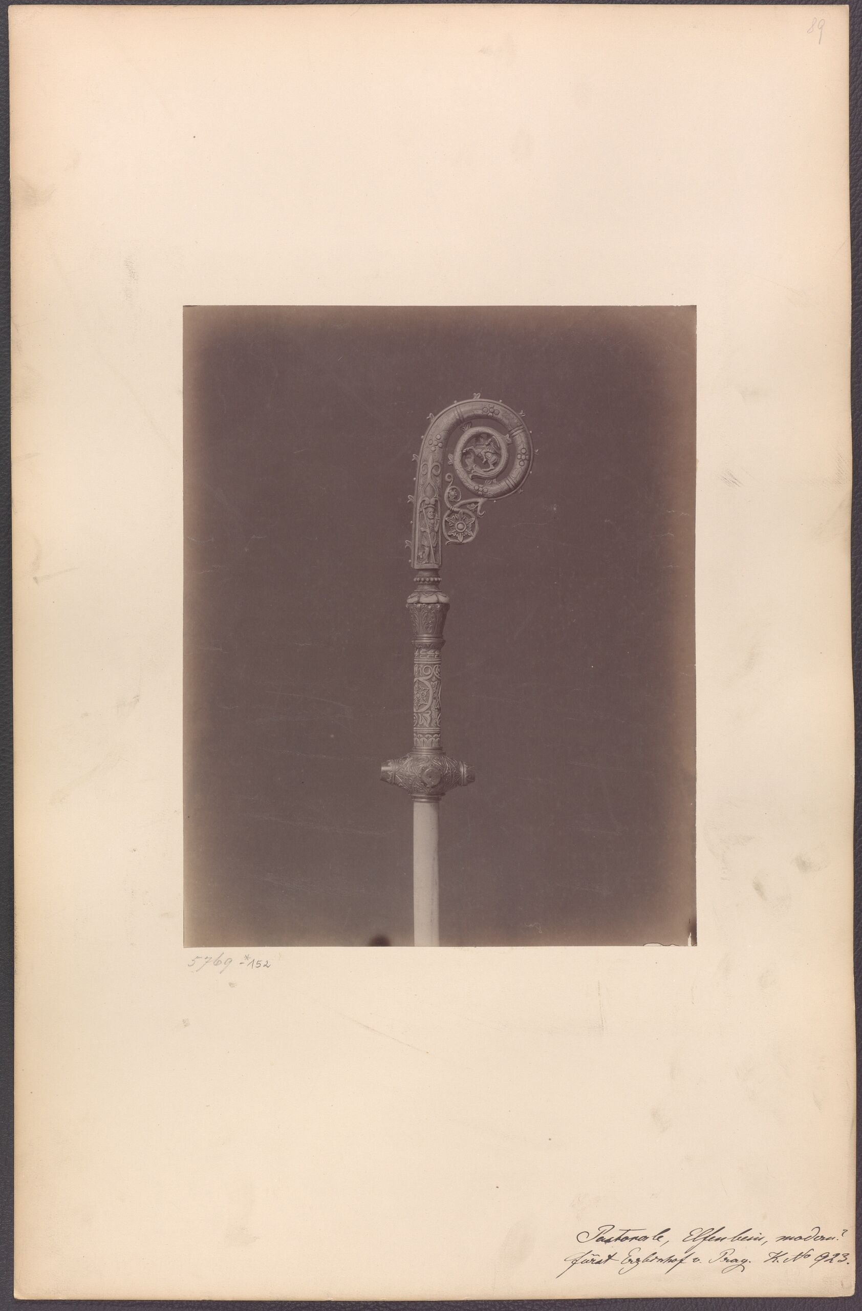 Fotografie, Fotografie eines Bichofsstabs aus Elfenbein, Rudolf von Waldheim (Wien), MAK Inv.nr. KI 5769-152