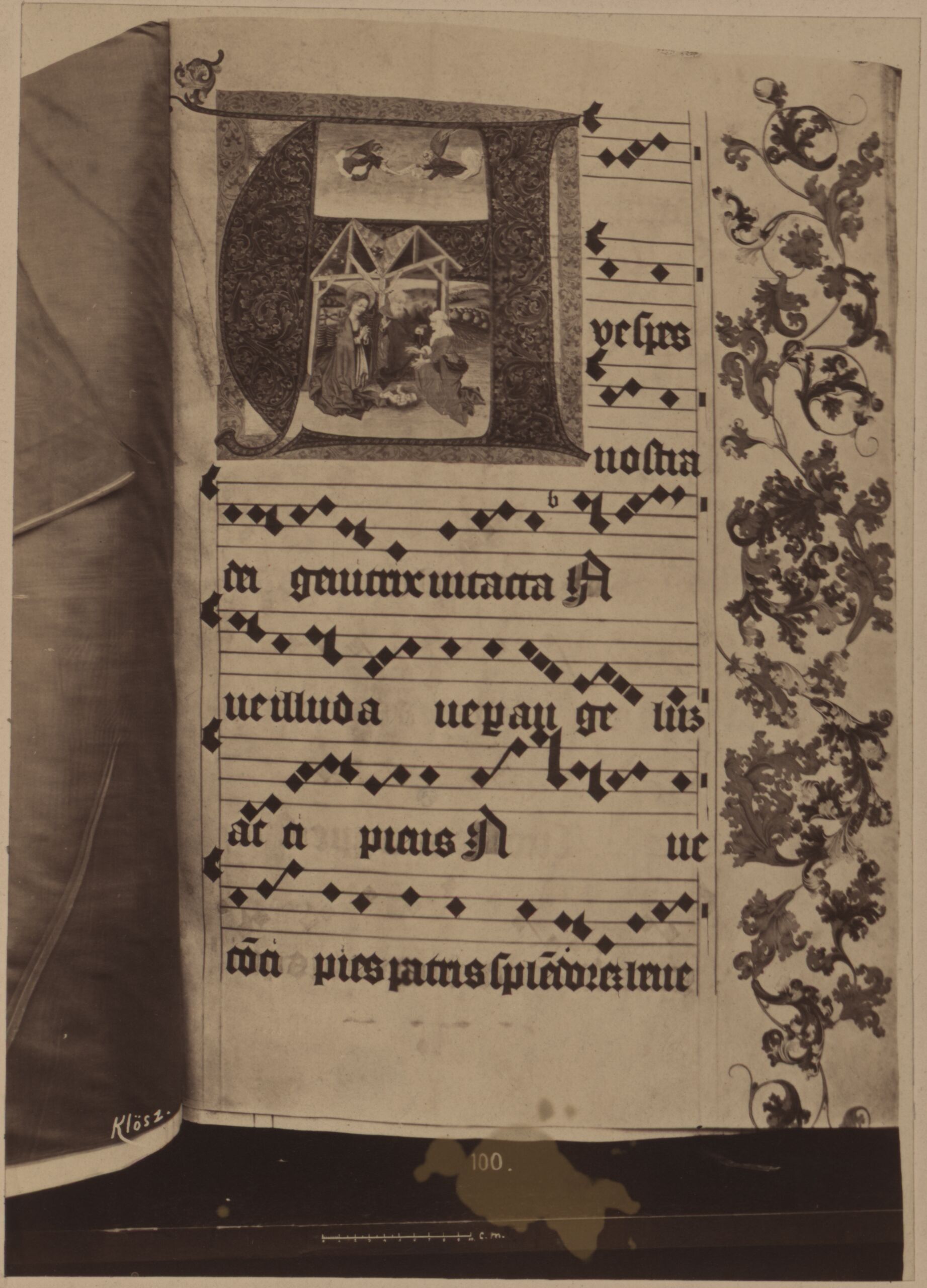 Fotografie, Fotografie eines Blattes mit einer Miniaturmalerei, aus einem Antiphonarium, György Klösz, MAK Inv.nr. KI 5045-5
