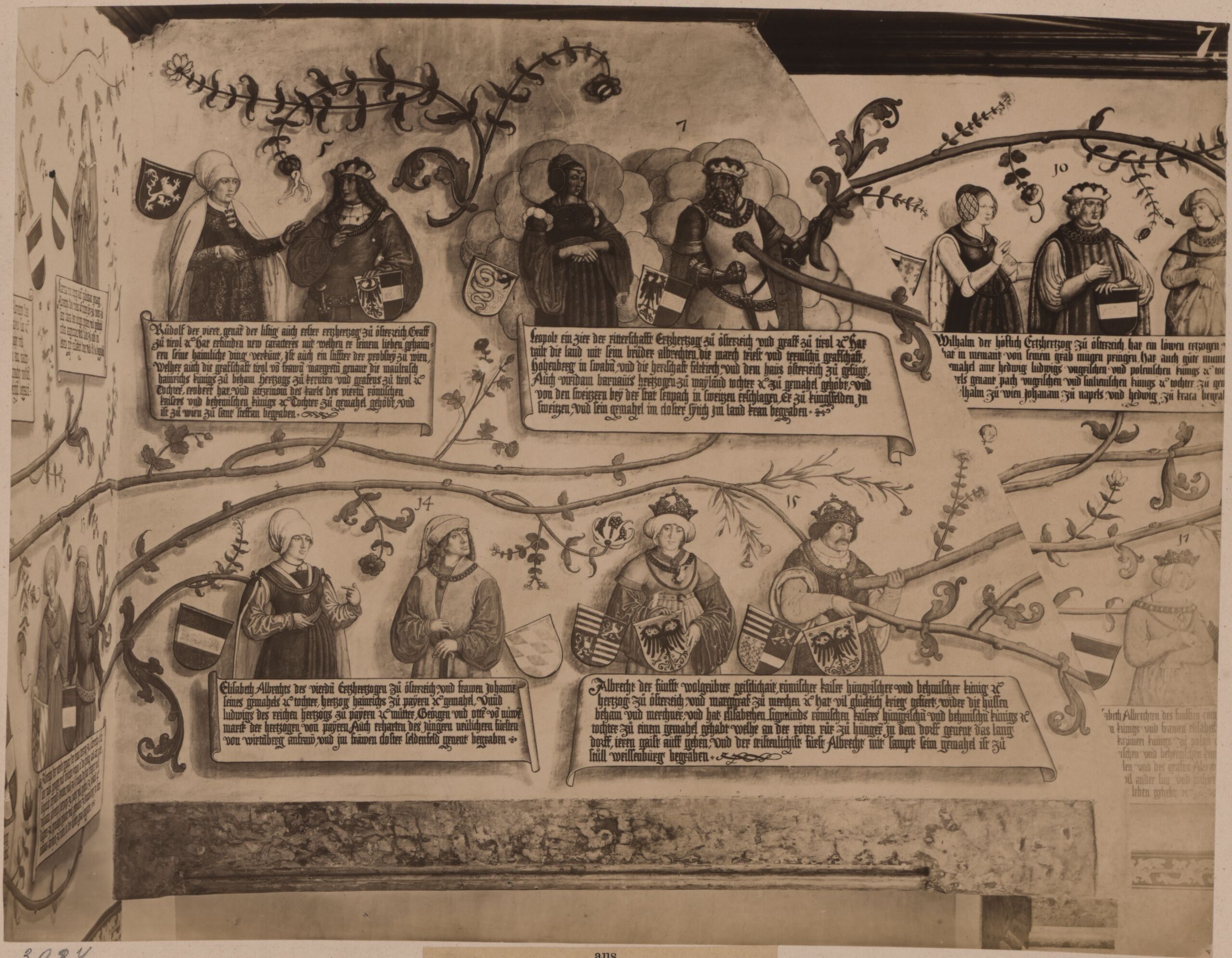 Fotografie, Fotografie eines Details des Habsburger-Stammbaums aus dem 16. Jahrhundert auf Schloss Tratzberg in Tirol, Friedrich Bopp, MAK Inv.nr. KI 3937-45