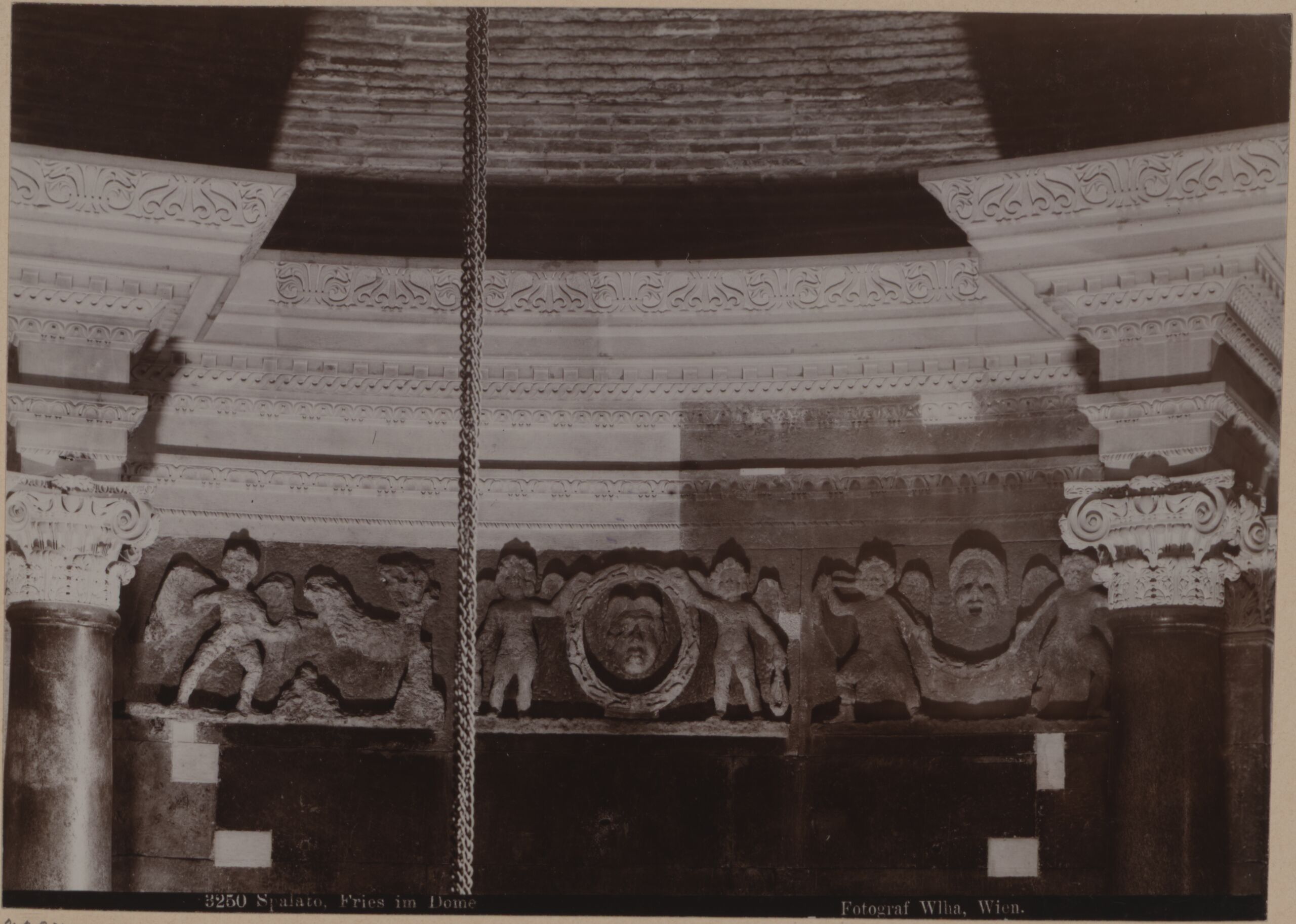 - Text am Objekt (mittig unten) : 3250 Spalato, Fries im Dome / Fotograf Wlha, Wien.