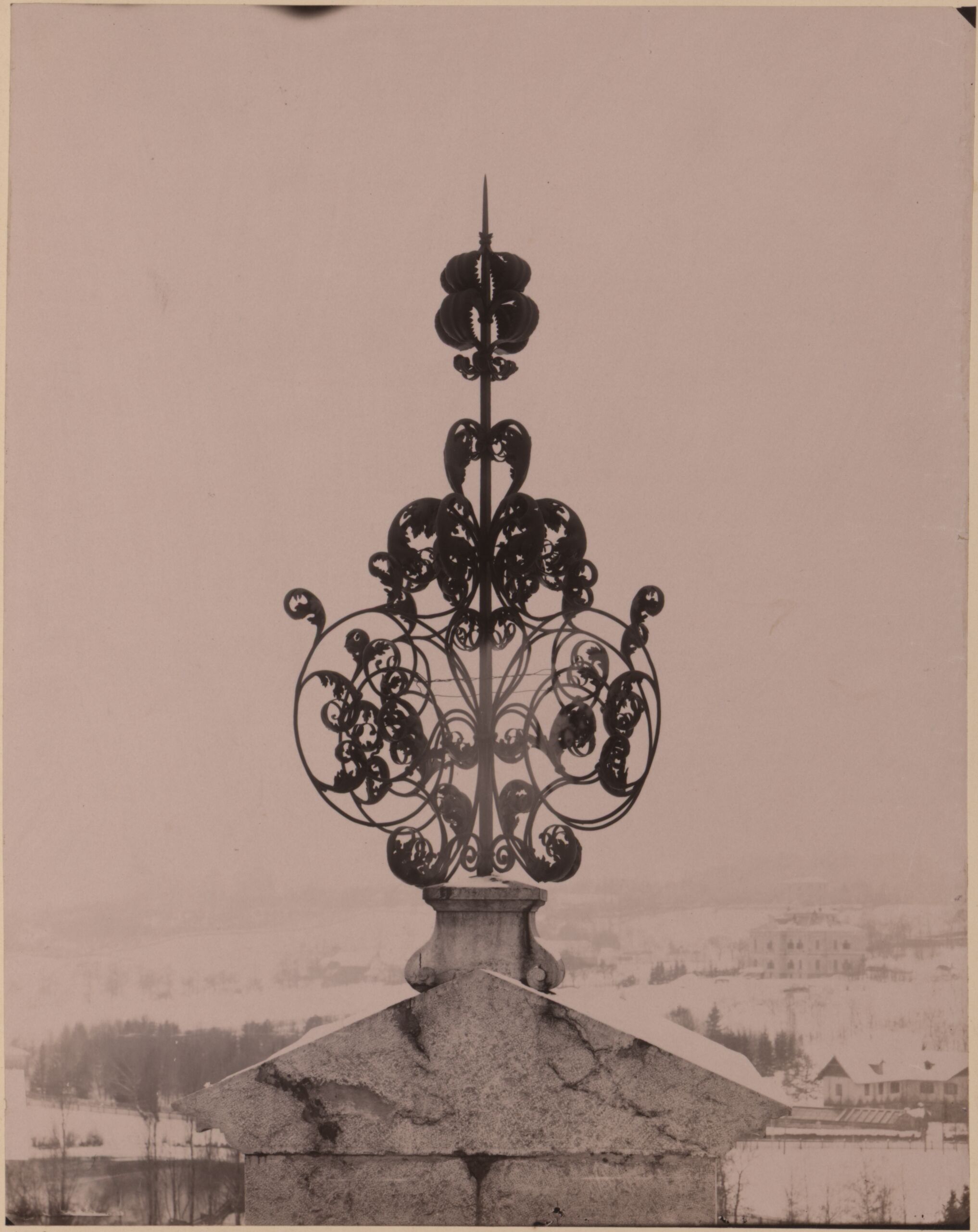 Fotografie, Fotografie eines Giebelaufsatzes der Villa Toscana in Gmunden, Camillo Ichzenthaler, MAK Inv.nr. KI 6848-47