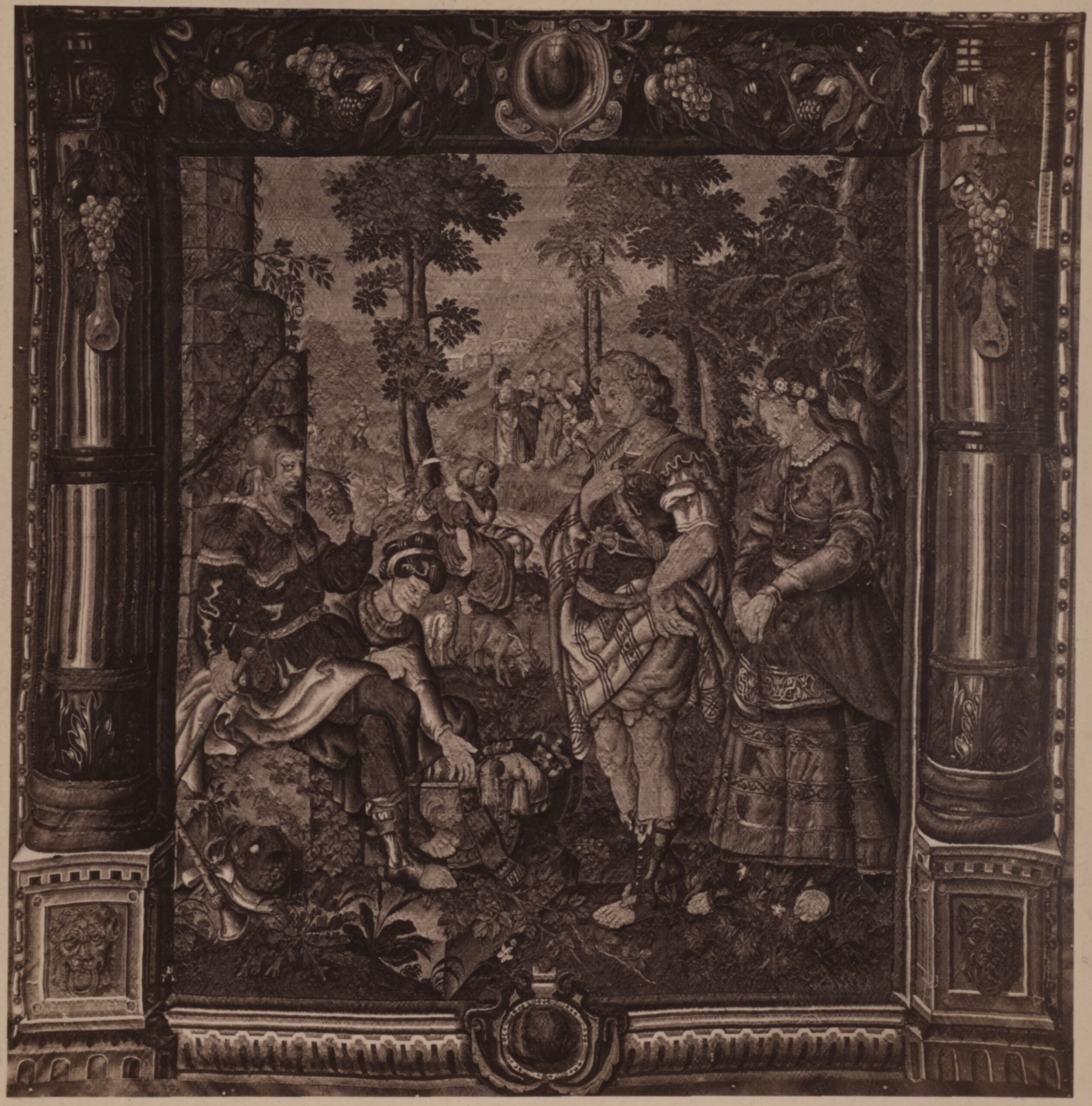 Fotografie, Fotografie eines Gobelins "Paris und Helena vor Priamos und Hekuba" aus der Wawelburg, Krakau, Ignaz Krieger, MAK Inv.nr. KI 3720-12