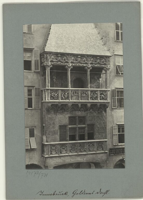 - Text am Objekt (Untersatzkarton, mittig unten) : Innsbruck, Haustor.
