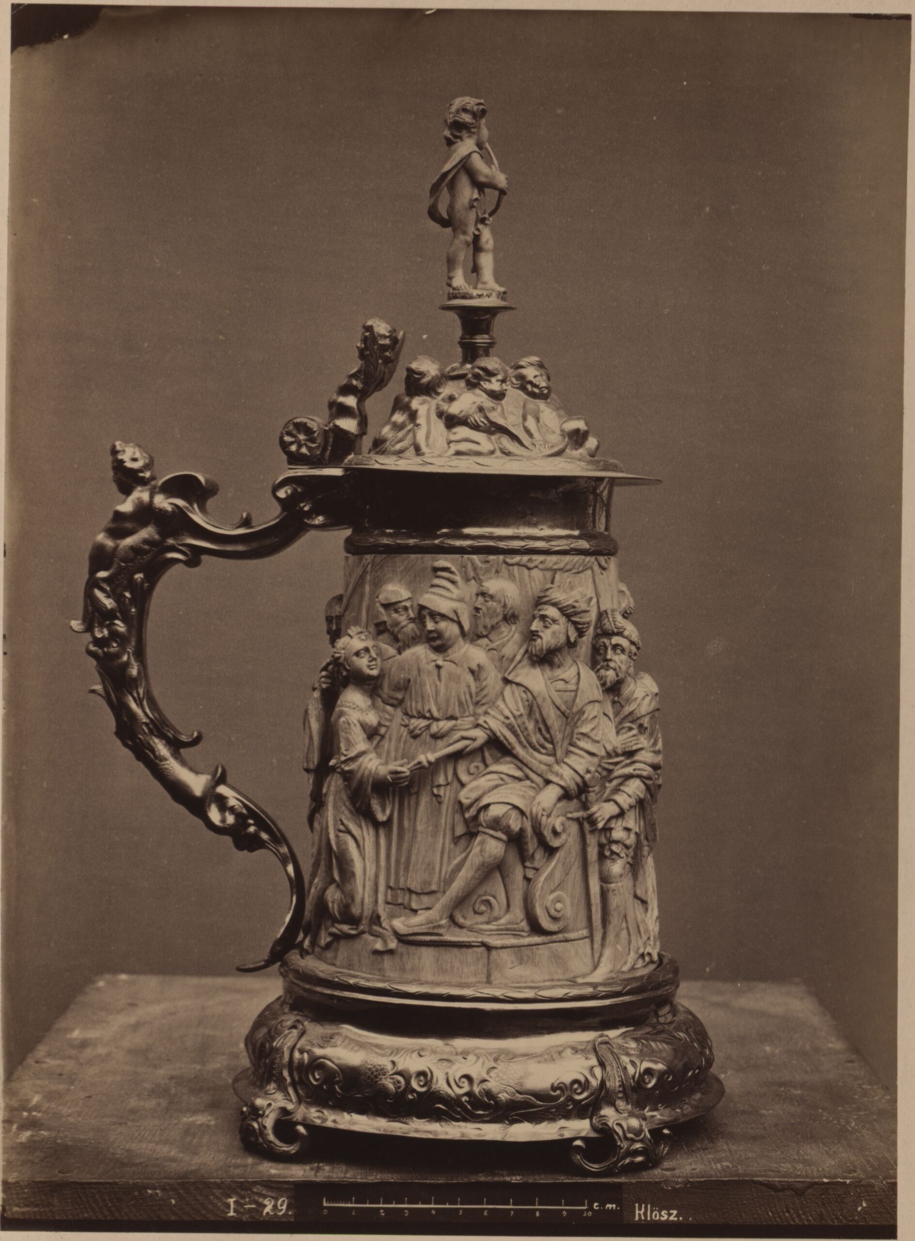Fotografie, Fotografie eines Humpens mit einem Elfenbeinrelief des Urteils Salomos, György Klösz, MAK Inv.nr. KI 5039-5