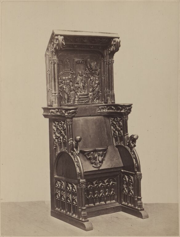 - Text am Objekt: [Untersatzkarton, gedruckt]: L'ART ANCIEN / UNION CENTRALE DES BEAUX ARTS APPLIQUES A L'INDUSTRIE / EXPOSITION DE 1865. / FRANCK PHOT. / 18. Rue Vivienne PARIS. [Untersatzkarton, links, aufgeklebt]: MUSÉE RÉTROSPECTIF / Cabinet italien / Ébène ncrusté d'ivoire / Appartemant à M. de MONTBRISON. [Untersatzkarton, rechts]: Italien. Ebenholzschrank mit Perlmutterinkrustation / 17. Jh.