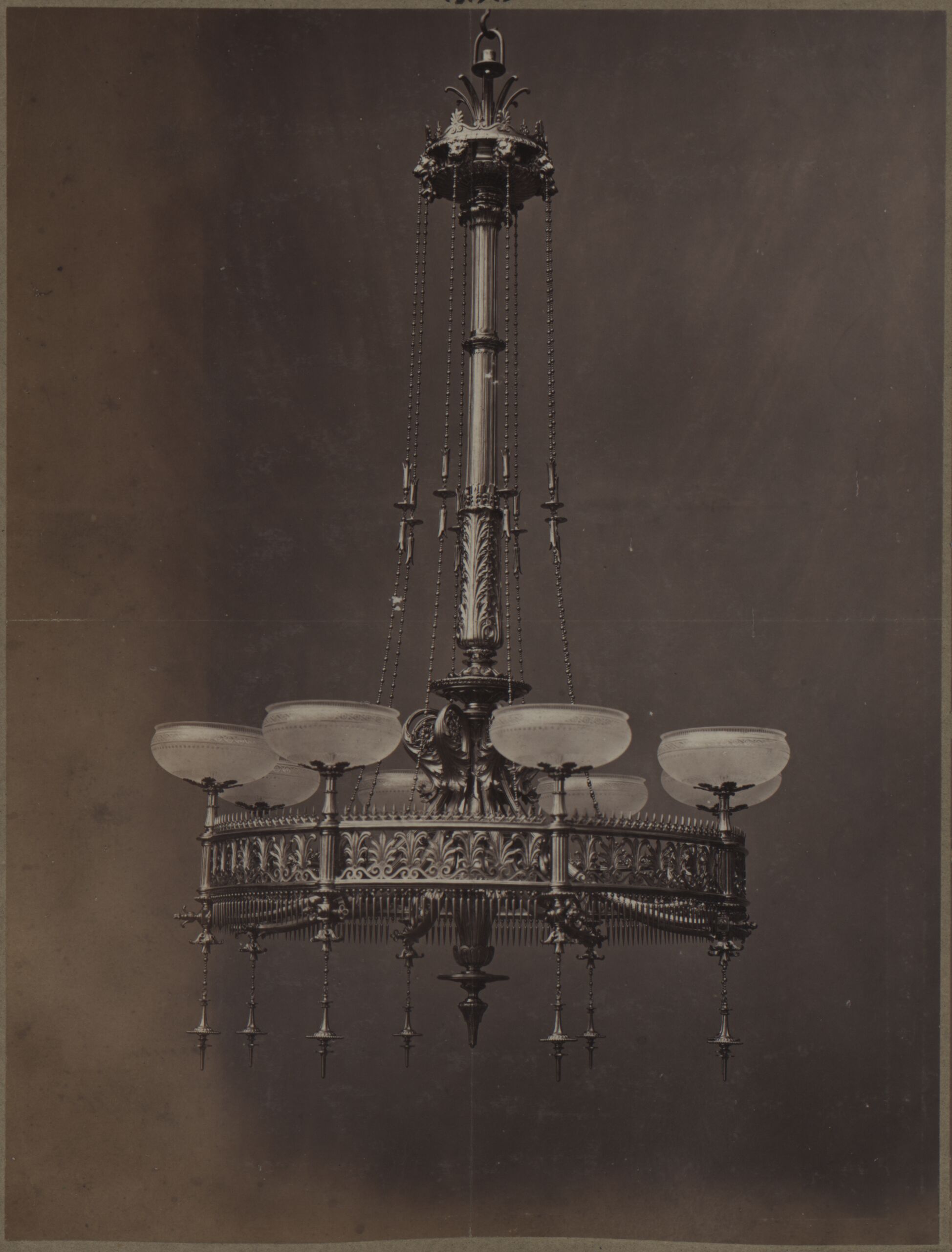 Fotografie, Fotografie eines Lusters der Erzgießerei & Bronzewarenfabrik D. Hollenbach, David Hollenbach, MAK Inv.nr. KI 18709-109-3