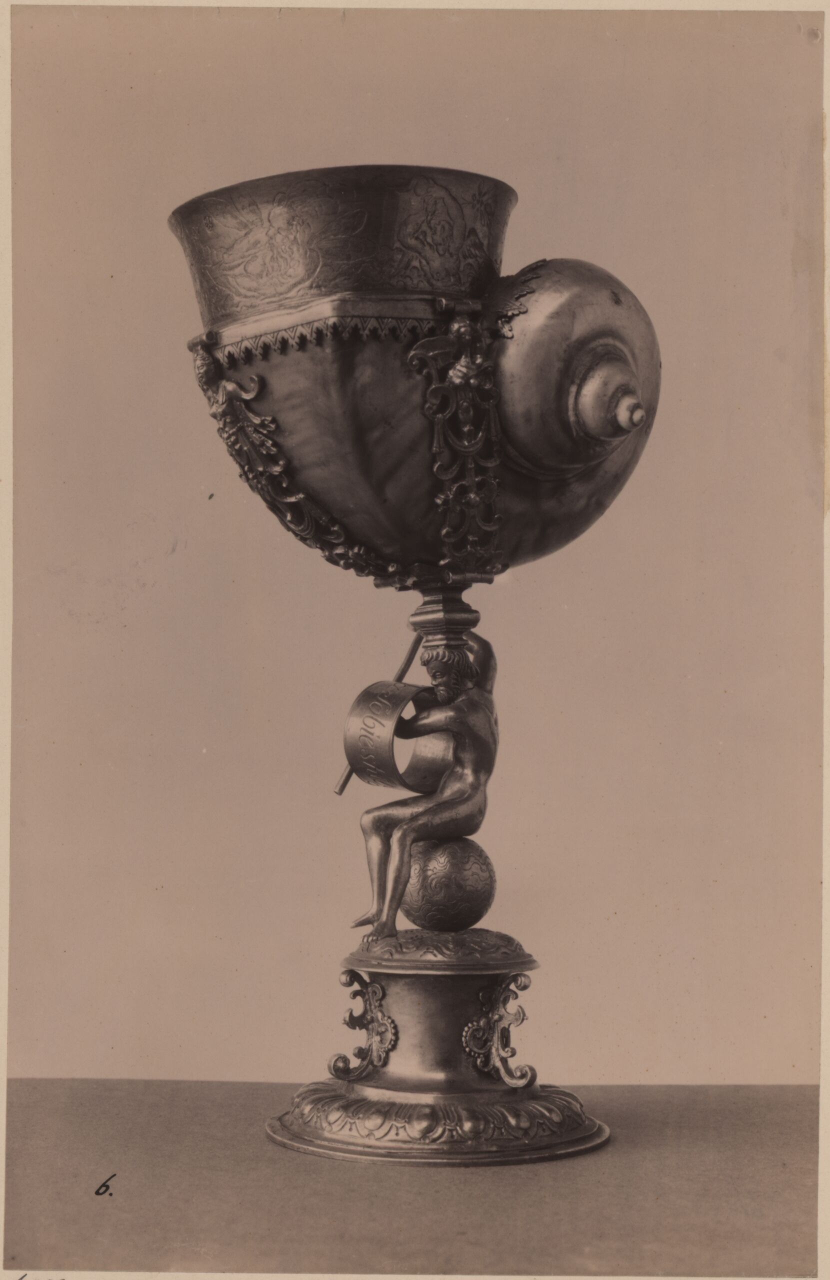 Fotografie, Fotografie eines Nautiluskelchs des 17. Jahrhunderts aus der Sammlung Czartoyski in Krakau, Ignaz Krieger, MAK Inv.nr. KI 6502-24