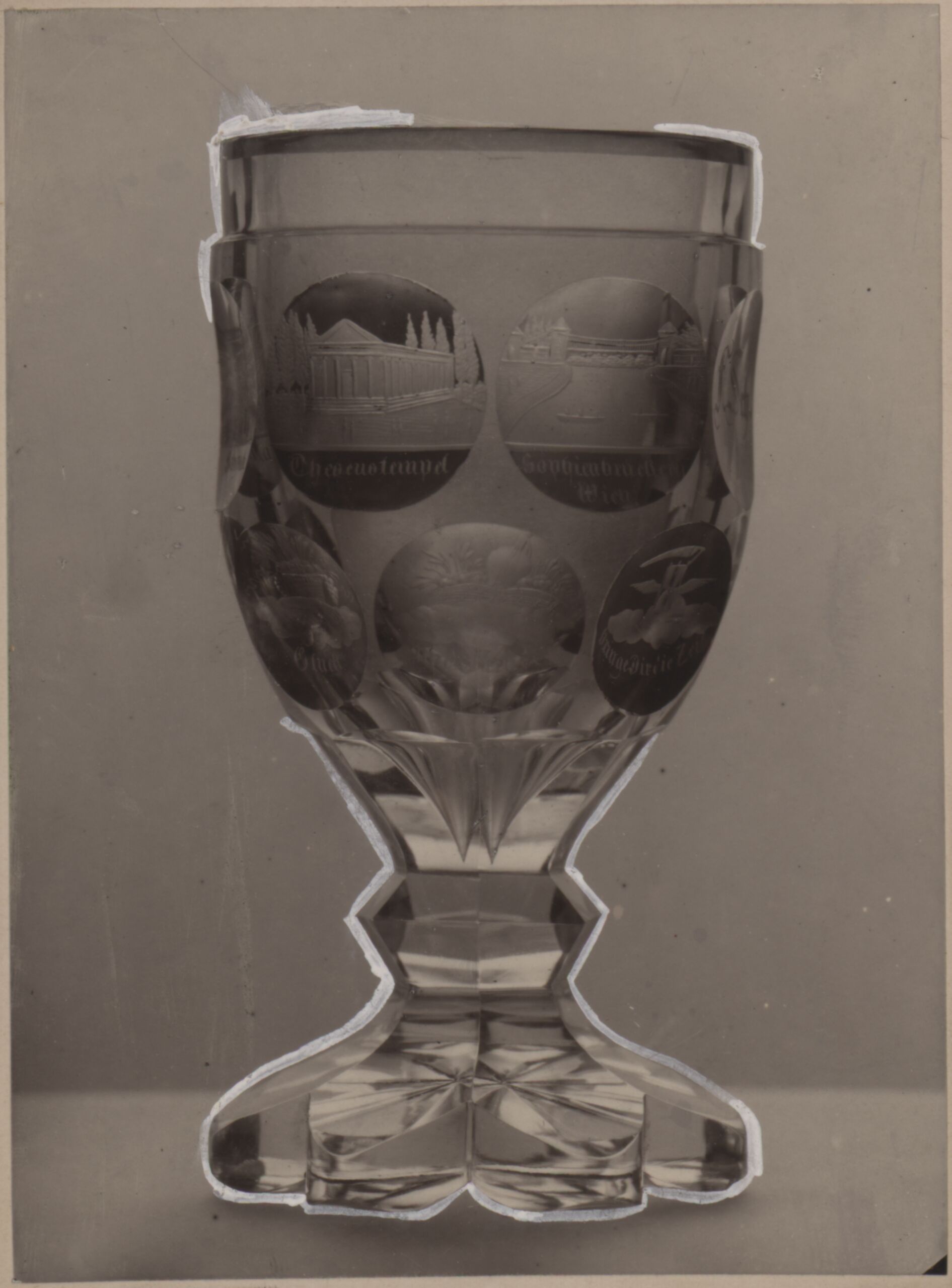 Fotografie, Fotografie eines Pokalglases mit Wiener Ansichten und Symbolen, Anonym, MAK Inv.nr. KI 9564-24