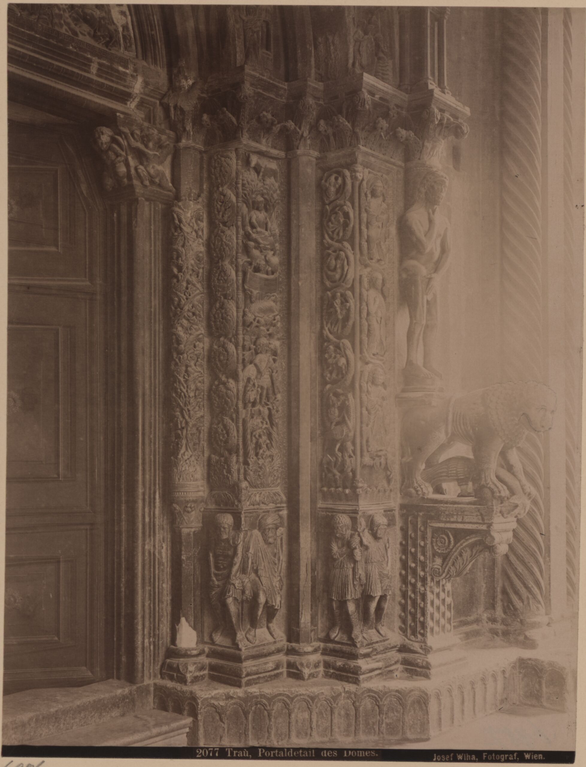 - Text am Objekt (mittig unten) : 2077 Traú, Portaldetail des Domes. / Josef Wlha, Fotograf, Wien.