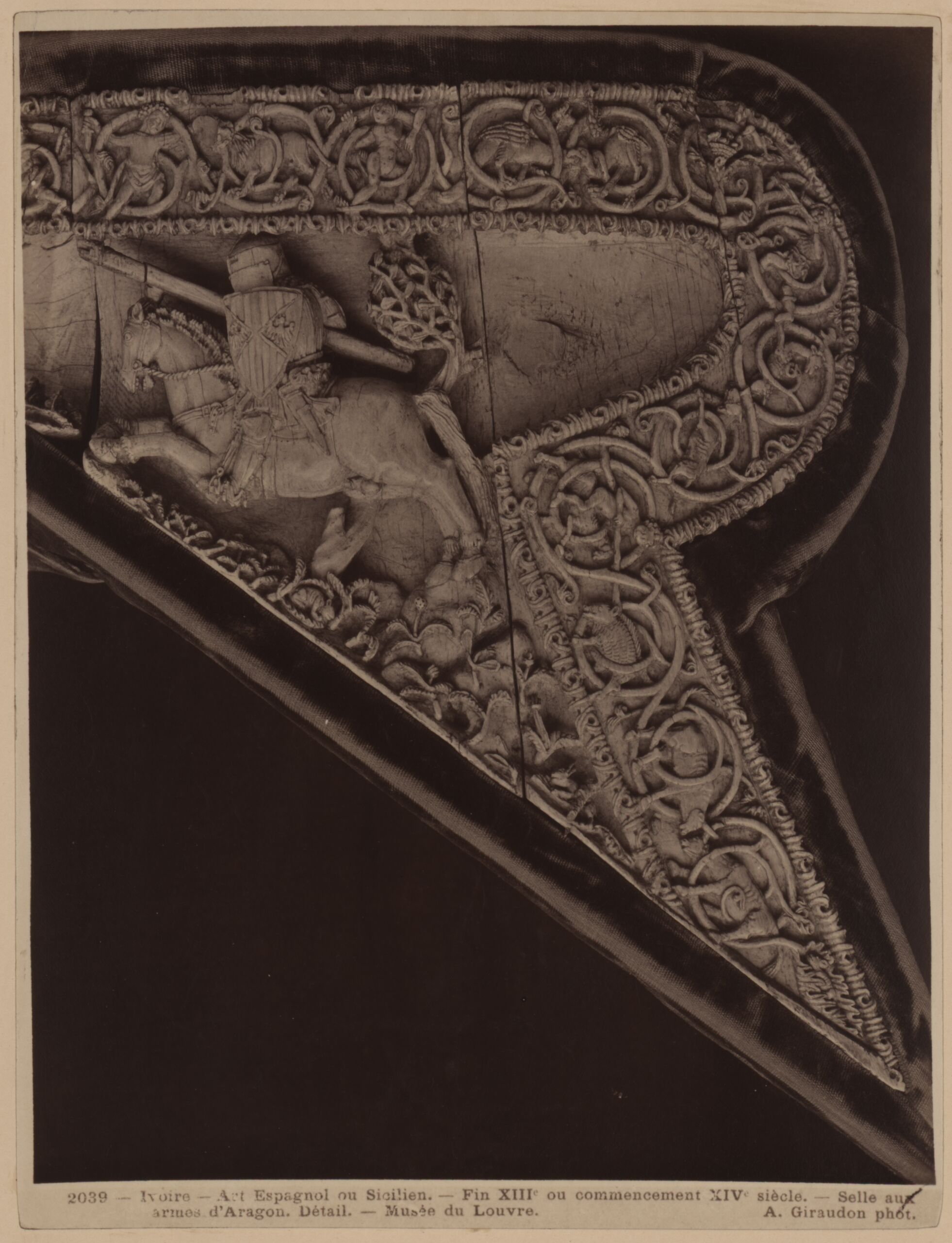 Fotografie, Fotografie eines Sattelbogens mit Elfenbeinrelief (spanisch bzw. sizilianisch, um 1400), Adolphe Giraudon, MAK Inv.nr. KI 7340-91
