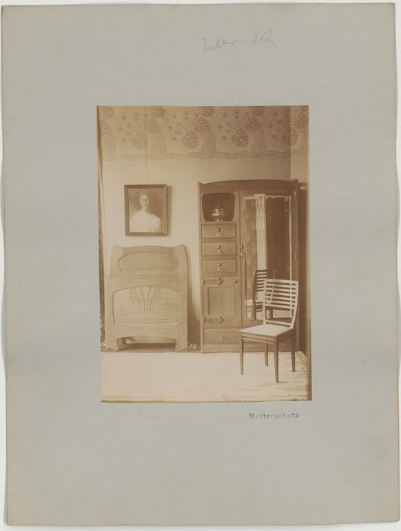 - Text am Objekt: [Untersatzkarton, links]: Ausstellung "Einfacher Hausrat" / Öst. Mus. f. Kunst u. Industrie, 1920/21 [Untersatzkarton, rechts]: Schlafzimmer von M. / Niedermoser & Sohn