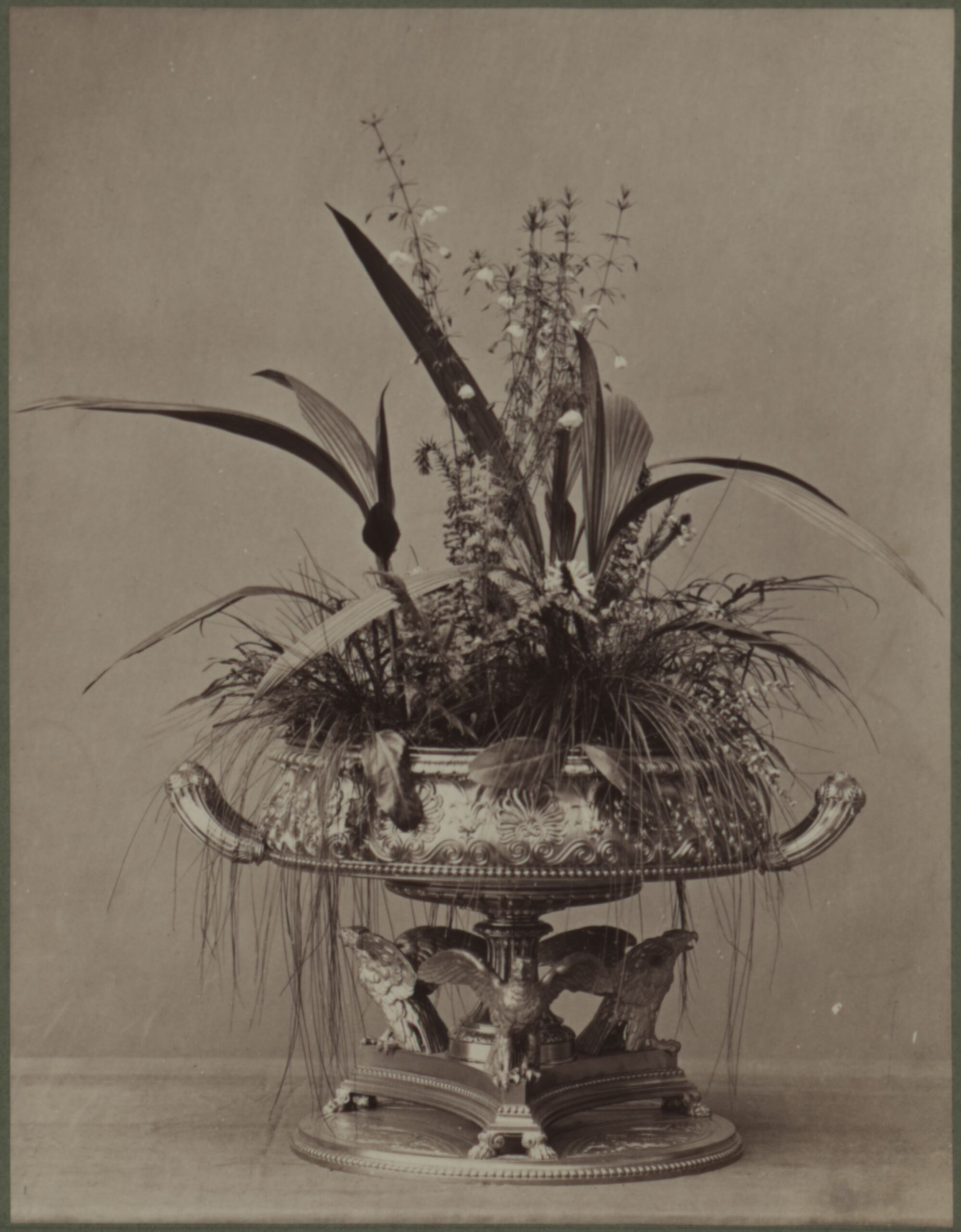 - Fotografie eines Seitenstücks eines Tafelaufsatzes aus vergoldeter Bronze (vom Bearbeiter vergebener Titel)