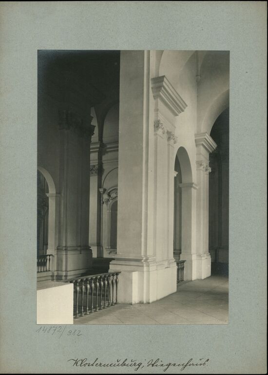 - Text am Objekt (Untersatzkarton, mittig unten) : Klosterneuburg, Prälaturstiege.