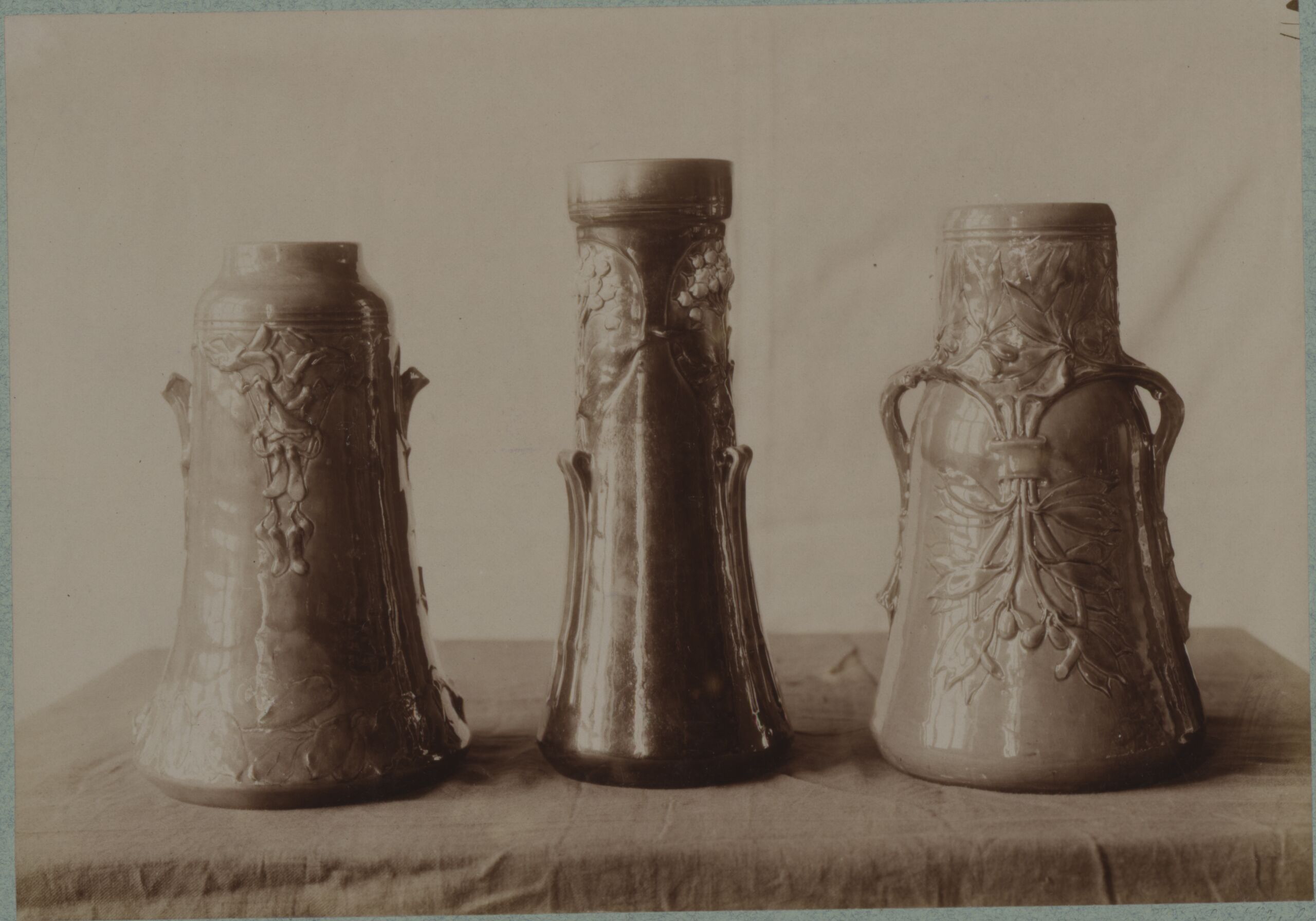 - Fotografie von drei Blumenvasen, gefertigt in der Kunstgewerbeschule in Prag (vom Bearbeiter vergebener Titel)