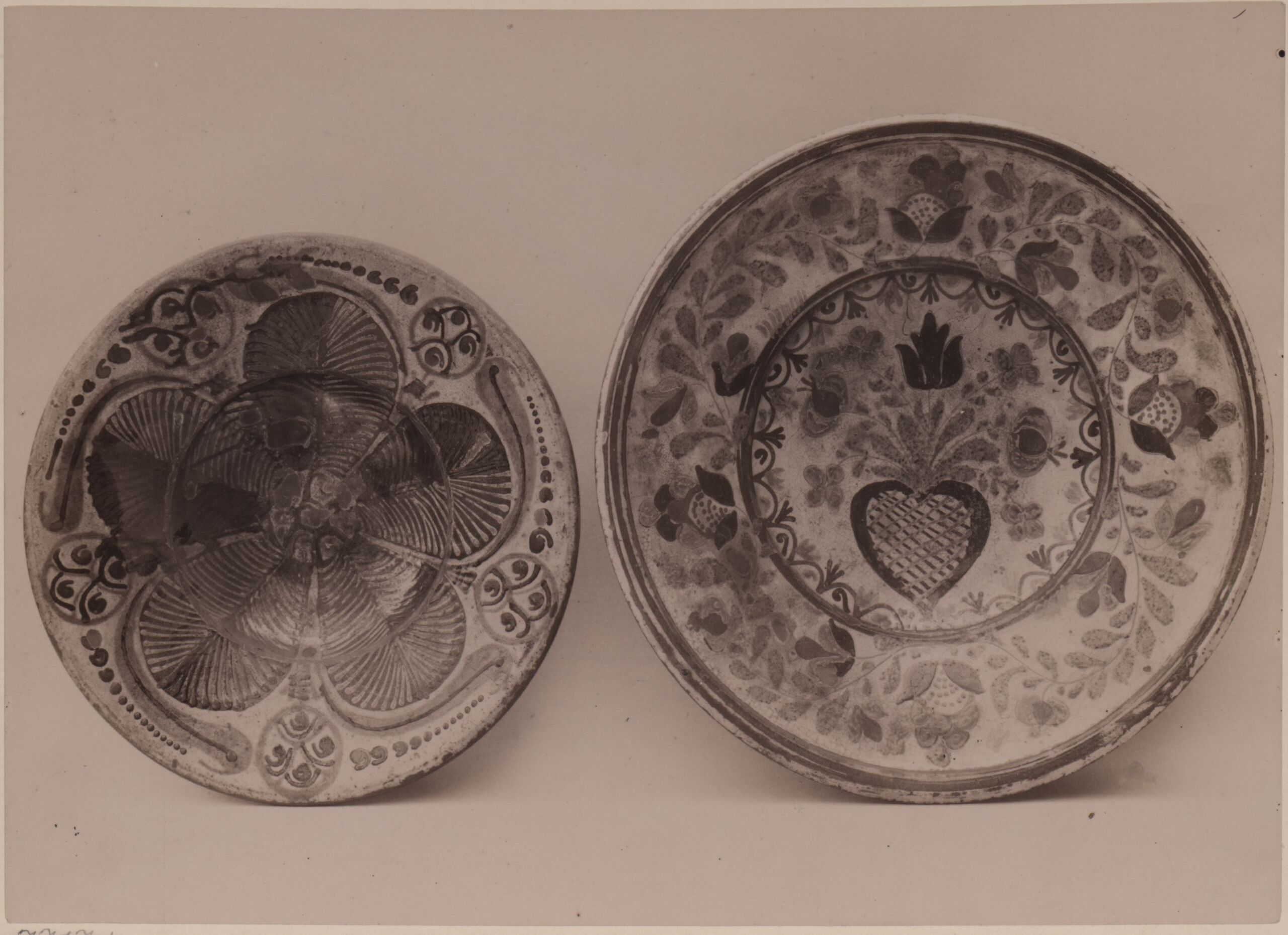 Fotografie, Fotografie von zwei bemalten Fayence-Schüsseln aus Oberösterreich bzw. der Steiermark, Wilhelm Gmeiner, MAK Inv.nr. KI 7717-474