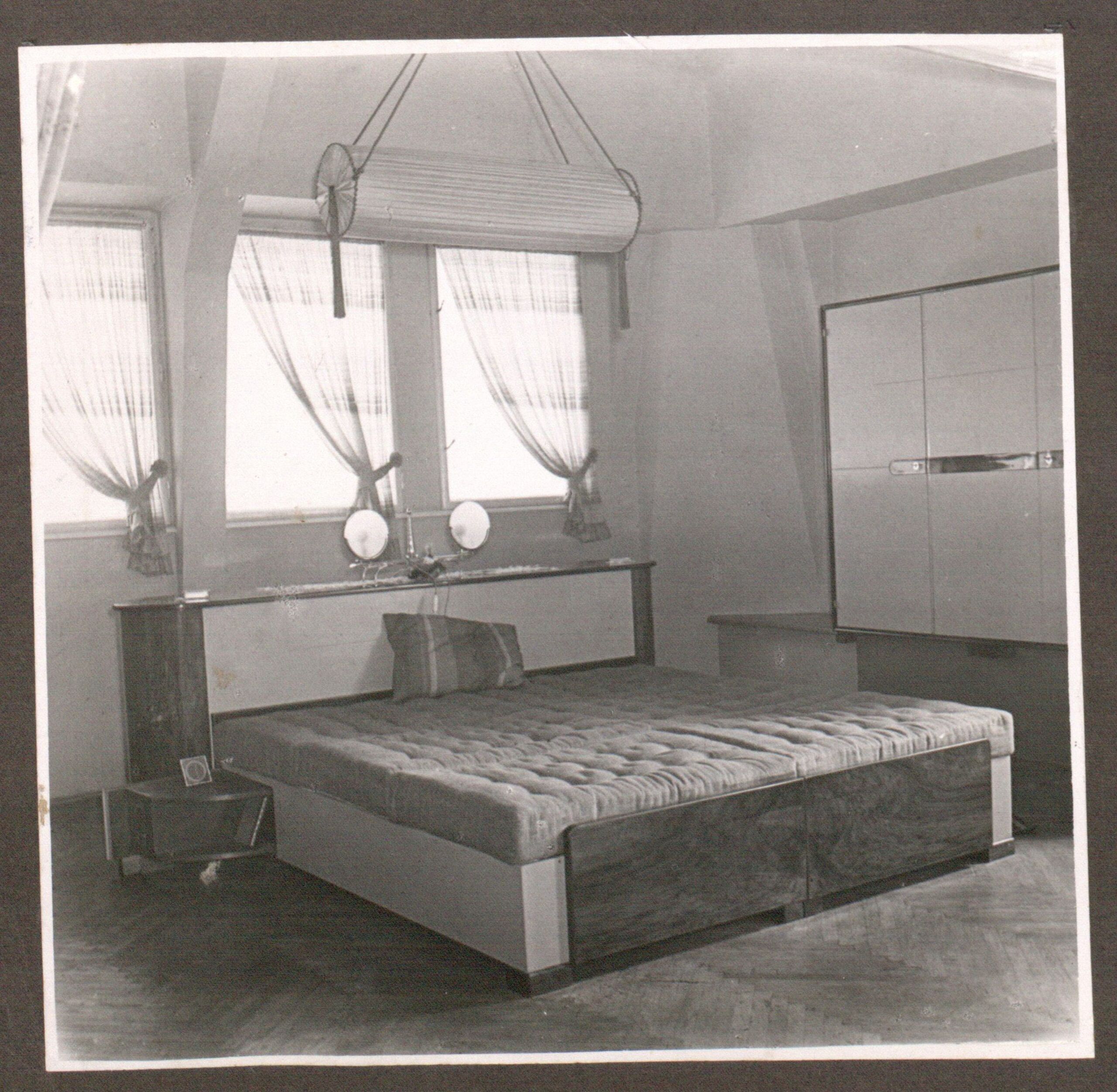 Möbel und Einrichtungsgegenstände wurden in Ensembles angeordnet und fotografiert (verschiedene Formate, Bl. beidseitig beklebt): u.a. Stühle, Polstersessel, Schreibtische, Schränke, Kommoden, Betten