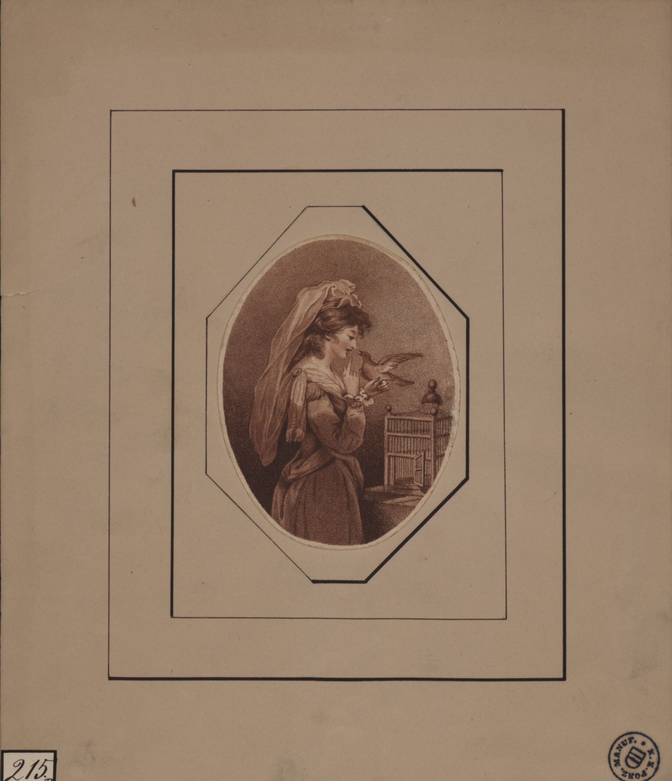 Druckgrafik, Frau mit Vogel / Der Kuß der Unschuld, Anonym, MAK Inv.nr. KI 15165-215