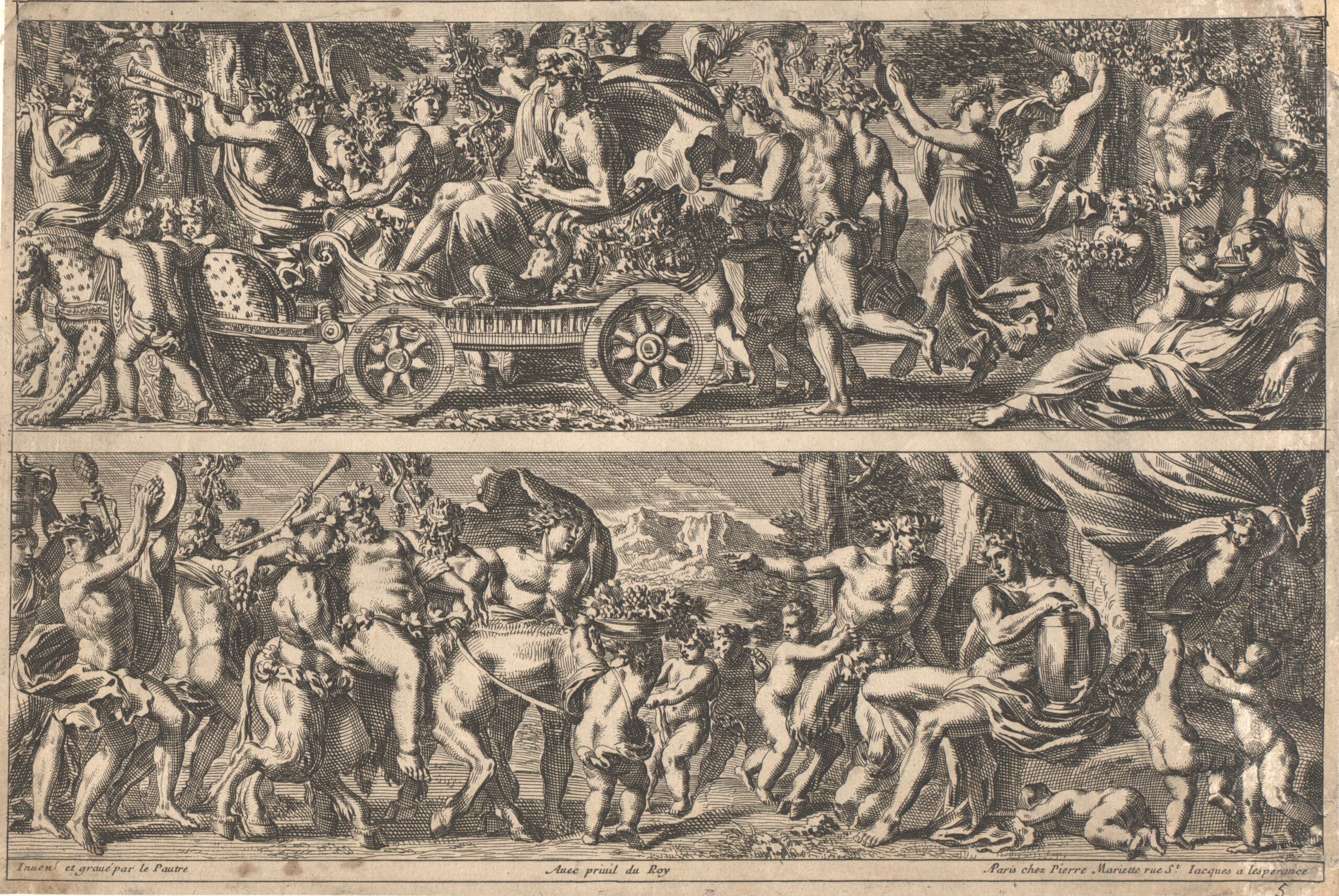 Ornamentstich, Fries, der Triumphzug des Bacchus, Blatt 5 aus einer Folge, herausgegeben von P. Mariette, Jean Lepautre, MAK Inv.nr. KI 10385-2