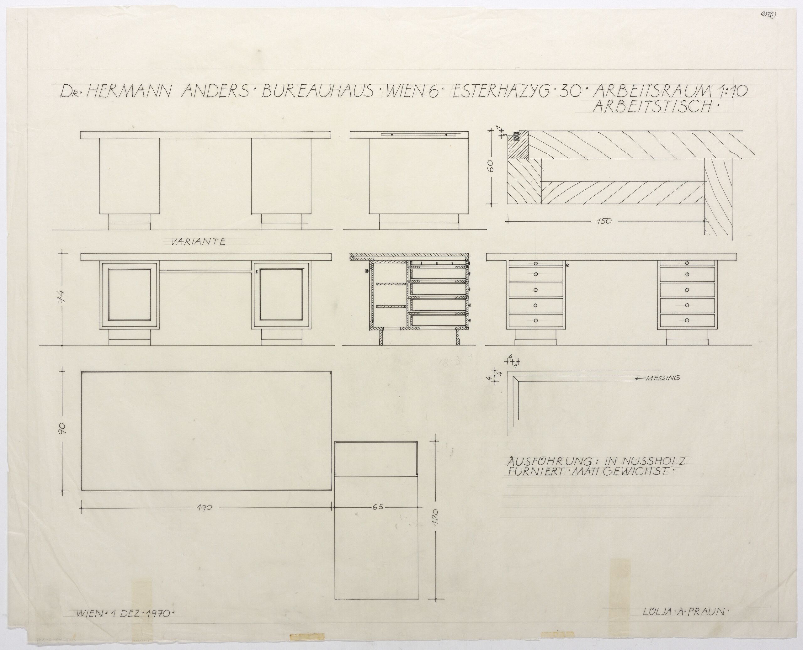 - Dr. Hermann Anders, Bureauhaus, Wien 6 Esterhazyg. 30, Arbeitsraum 1:10, Arbeitstisch (Originaltitel)