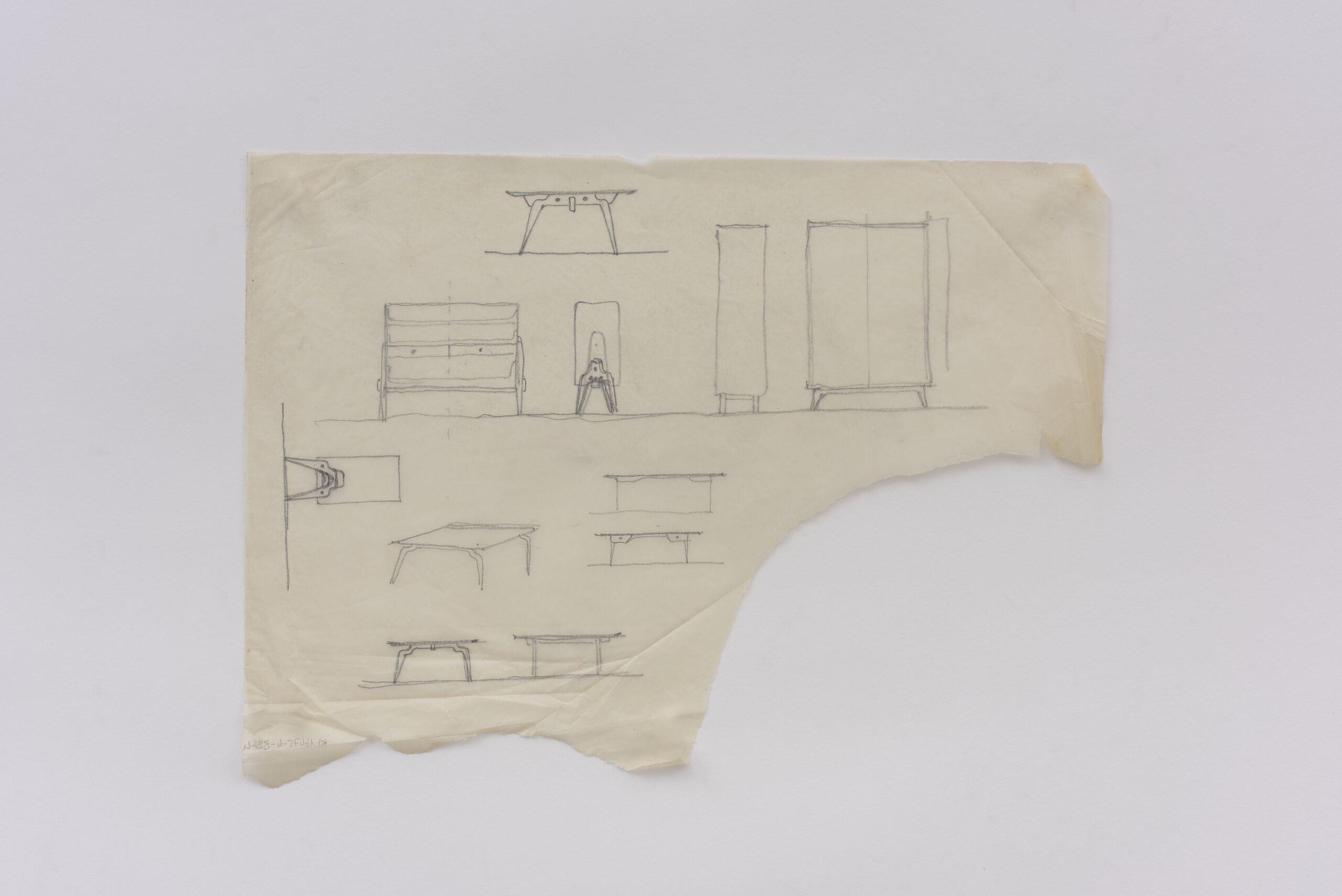 Skizze, Frontalansichten und Seitenansichten eine Tisches, eines Wäschekastens und eines Kleiderkastens, Anna-Lülja Praun, MAK Inv.nr. KI 16475-4-33-4