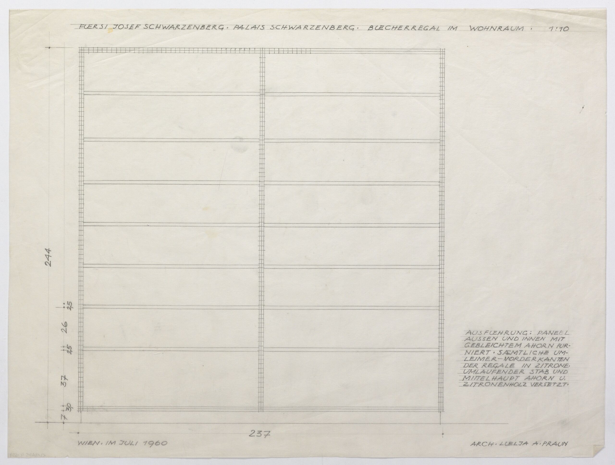 Entwurf, Fuerst Josef Schwarzenberg, Wien, Palais Schwarzenberg, Bücherregal im Wohnraum, 1:10, Anna-Lülja Praun, MAK Inv.nr. KI 16475-4-332