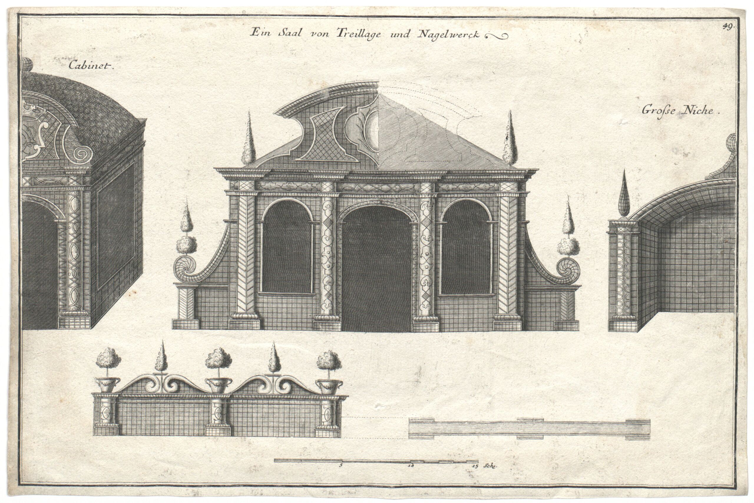 - Text am Objekt: Cabinet. Ein Saal von Treillage und Nagelwerck. Grosse Niche. / 49