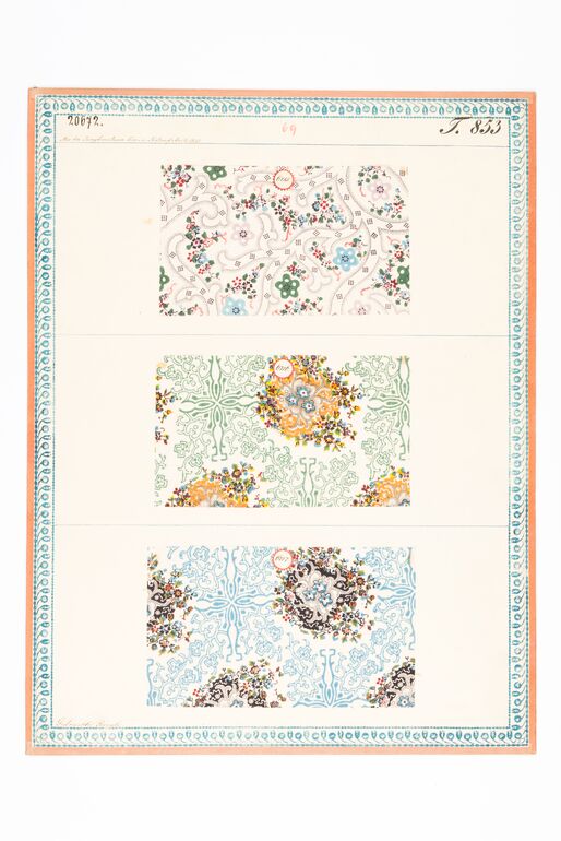 - Beschriftung (Vorderseite) : Aus Köchlin u. Singer's Druckmanufactur zu Jungbunzlau in Böhmen, 1837. / Gedruckte Batist-Musseline.