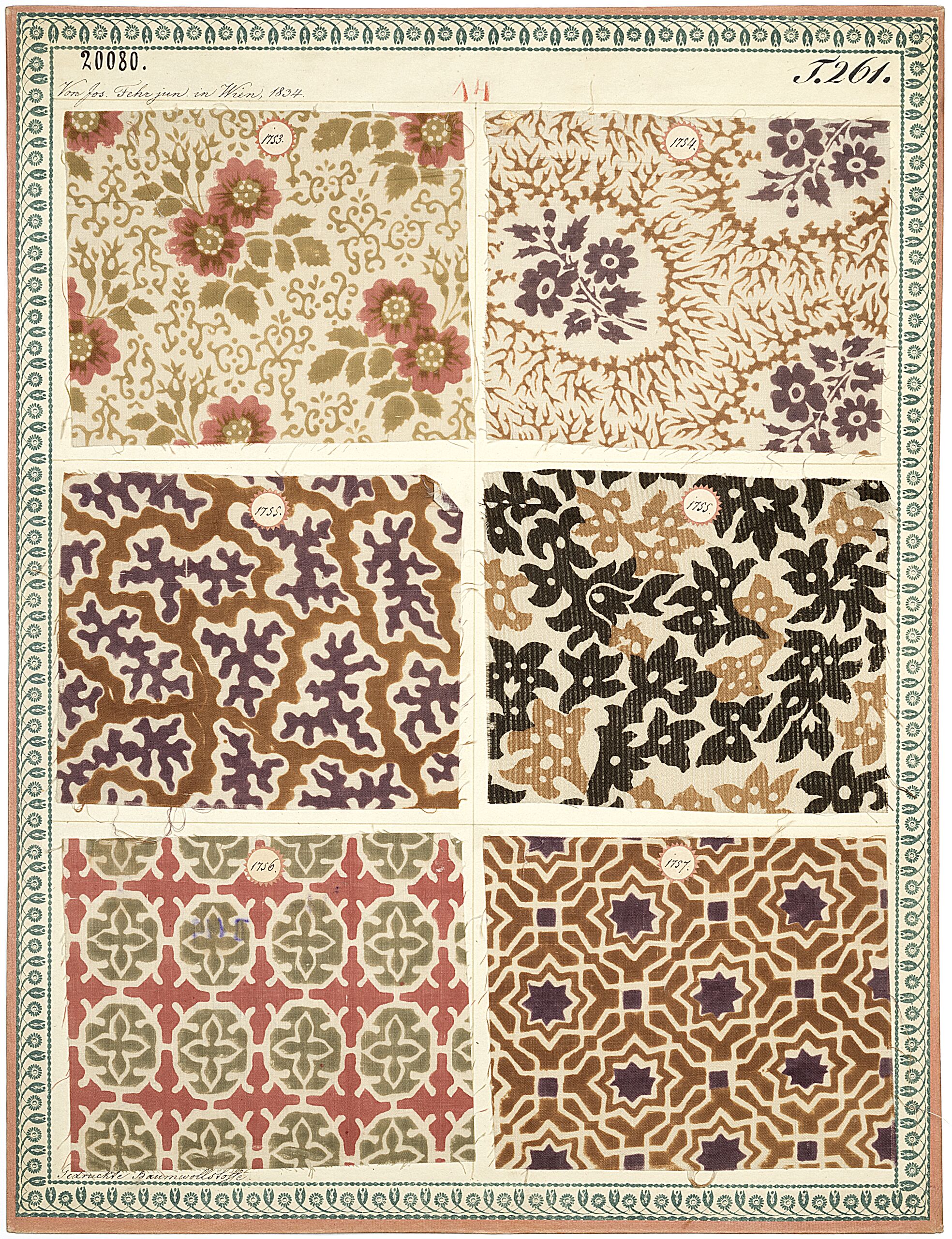 - Beschriftung (Vorderseite) : Von Jos. Fehr jun. in Wien, 1834. / Gedruckte Baumwollstoffe.