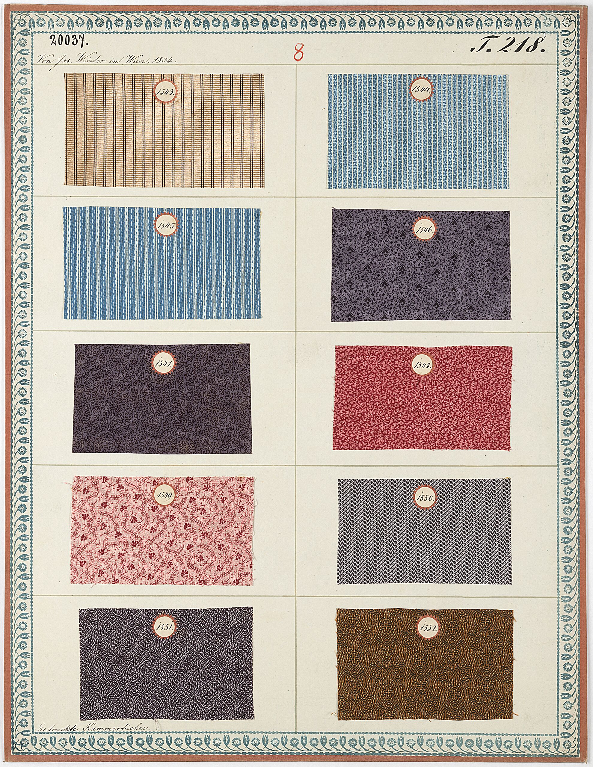 Mustertafel, Gedruckte Kammertücher, Joseph Winter, MAK Inv.nr. TGM 20037
