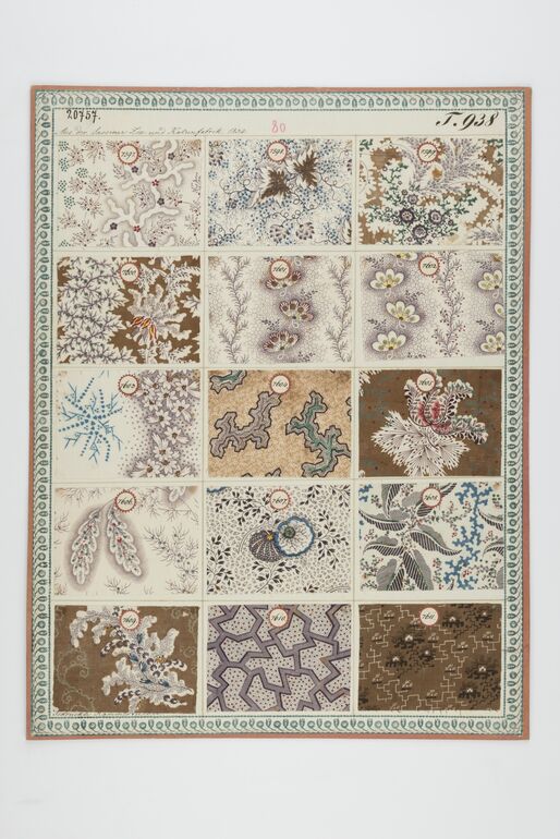 Mustertafel, Gedruckte Kammertücher, Karl von Puthon, MAK Inv.nr. TGM 20721