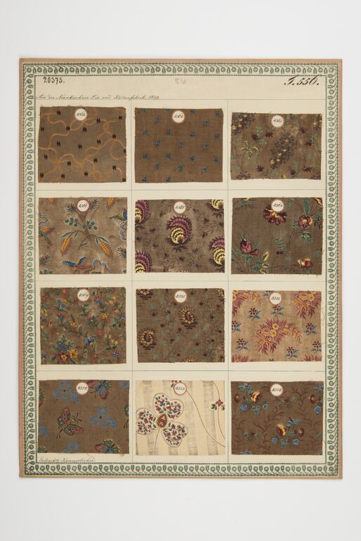 Mustertafel, Gedruckte Kammertücher, Du Pasquier et Comp. Du Bois, MAK Inv.nr. TGM 20438