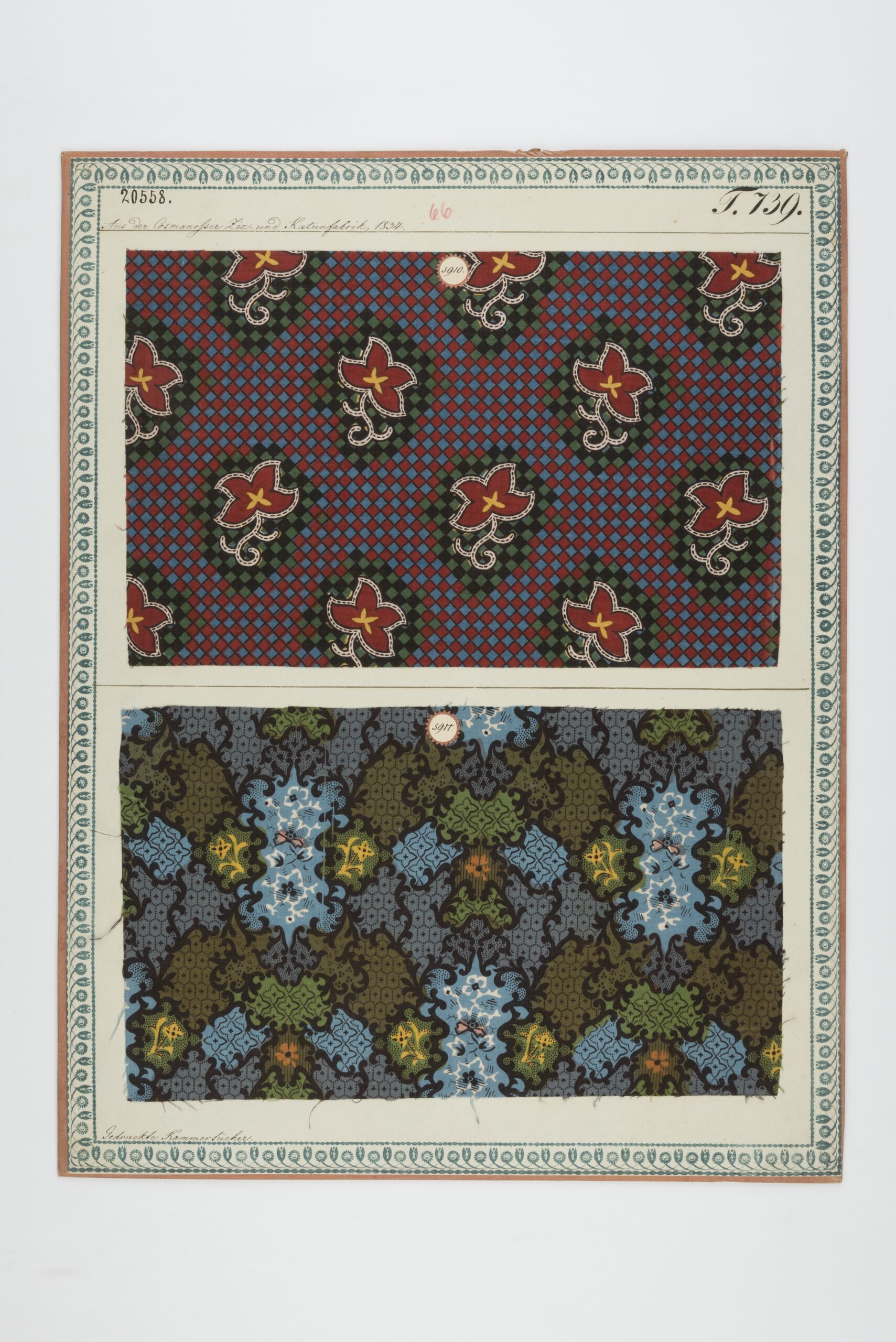 - Beschriftung (Vorderseite) : Aus der Cosmanosser Ziz- und Kattunfabrik, 1834. / Gedruckte Kammertücher.