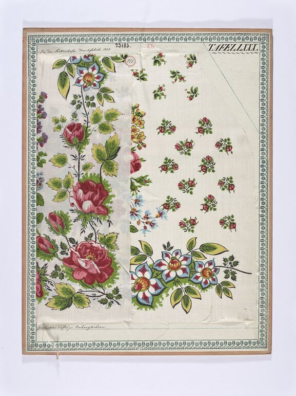 Mustertafel, Gedruckte Kammertücher, K. k. priv. Kettenhofer Zitz- und Kattunfabrik bei Schwechat, MAK Inv.nr. TGM 20273