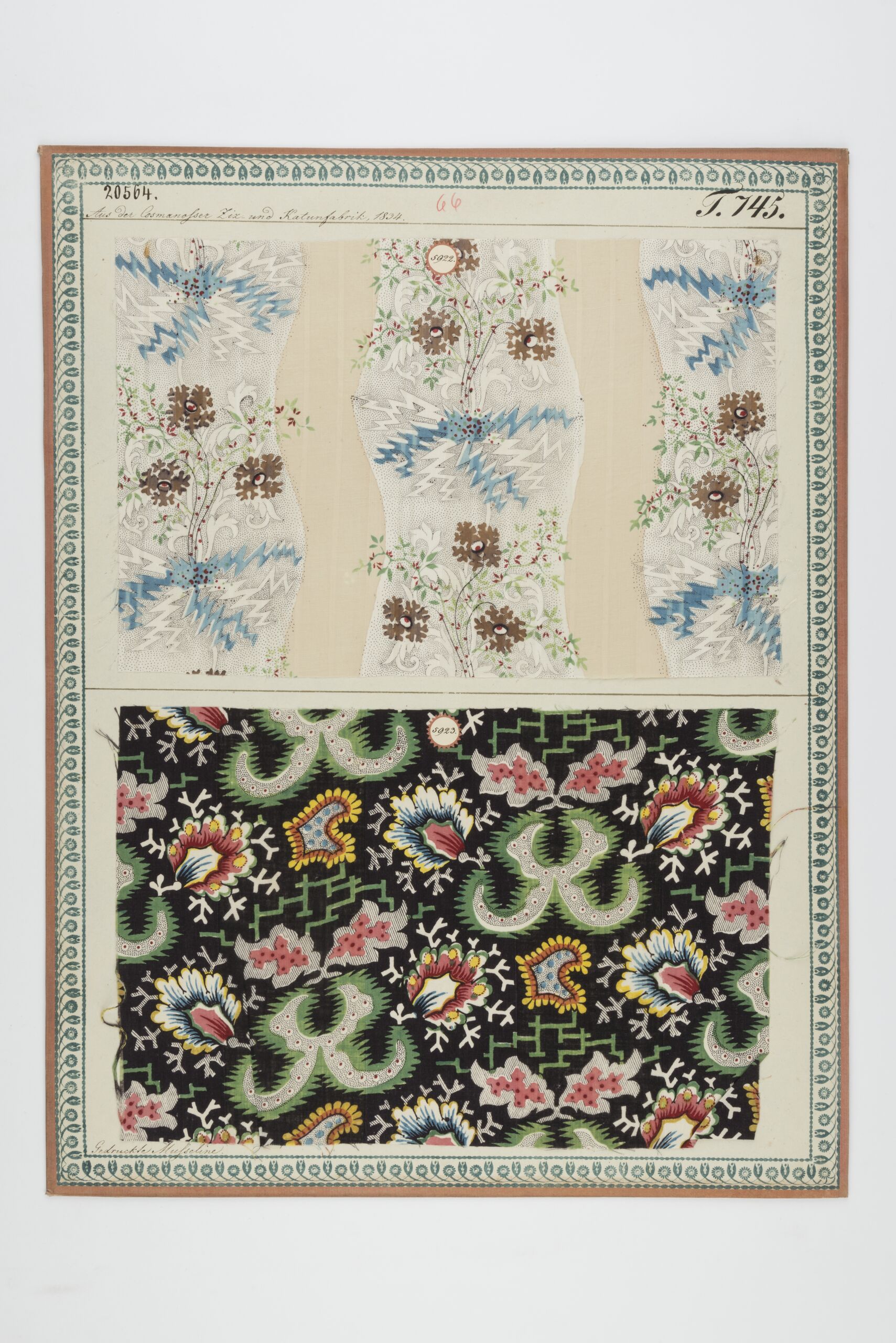 - Beschriftung (Vorderseite) : Aus der Cosmanosser Ziz- und Kattunfabrik, 1834. / Gedruckte Mussline.