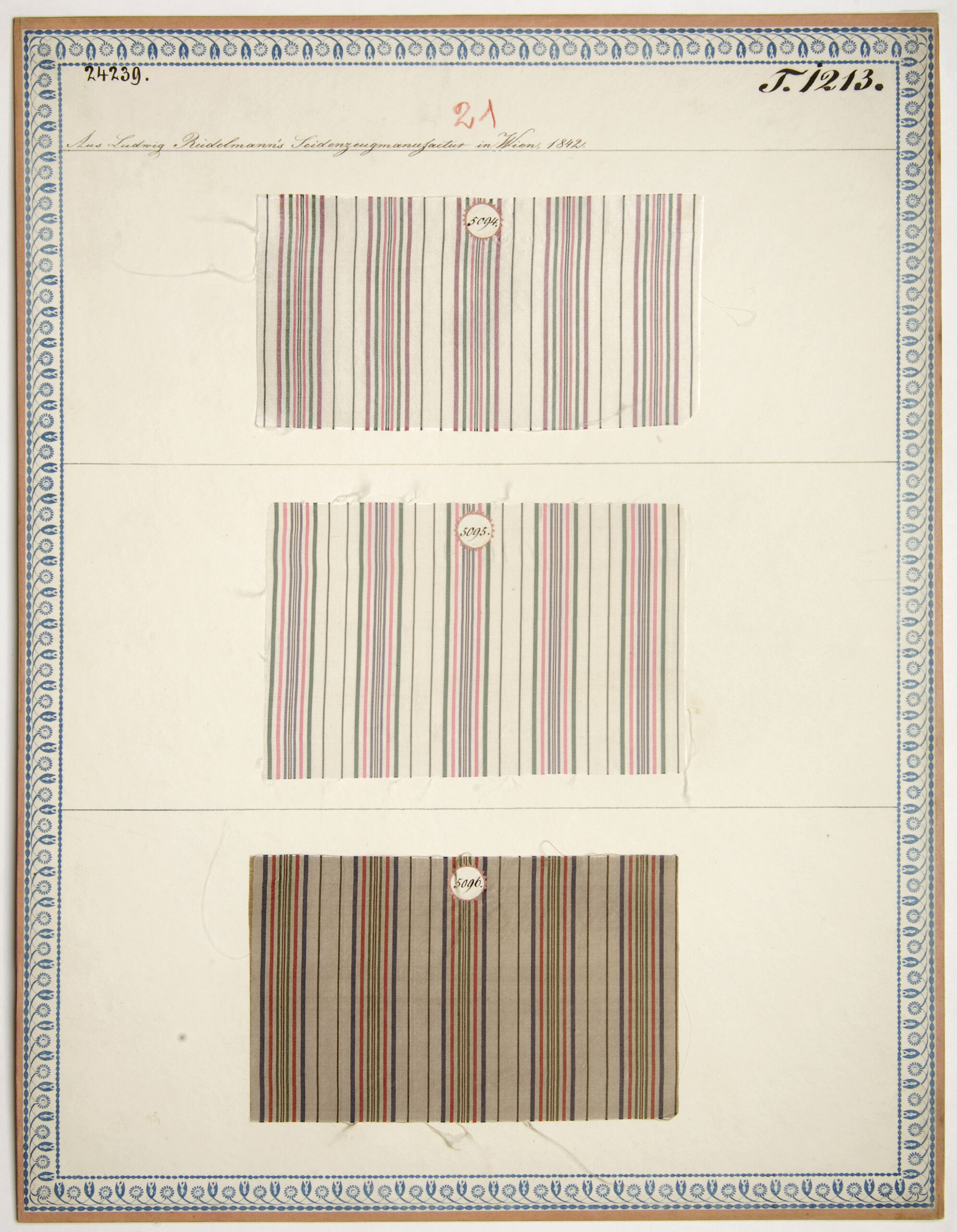 - Beschriftung (Vorderseite) : Aus Ludw. Rüdelmann's Seidenzeugmanufactur in Wien, 1842.