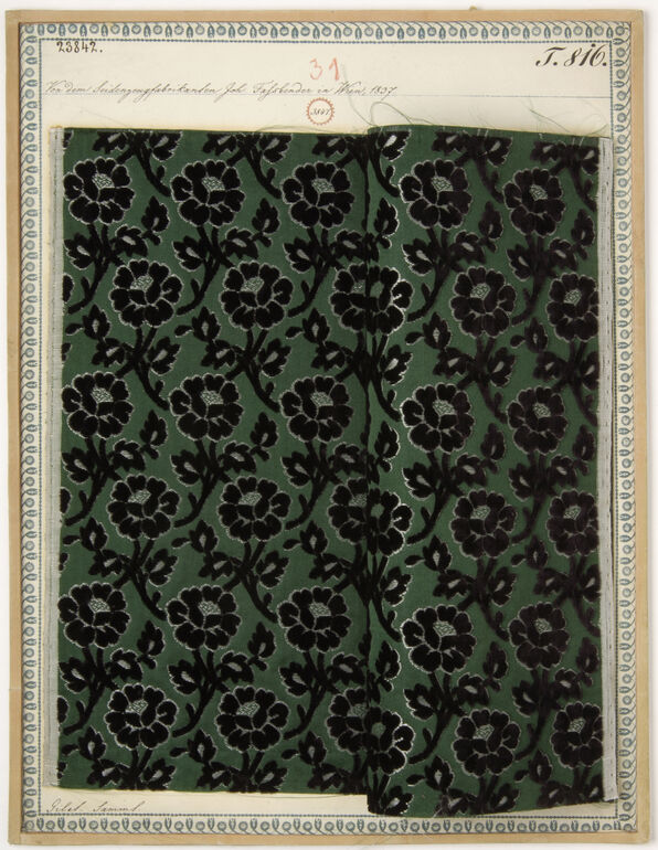 - Beschriftung (Vorderseite) : Aus Joh. Fassbender's Seidenzeugmanufactur in Wien, 1840. / Gilet-Stoffe.