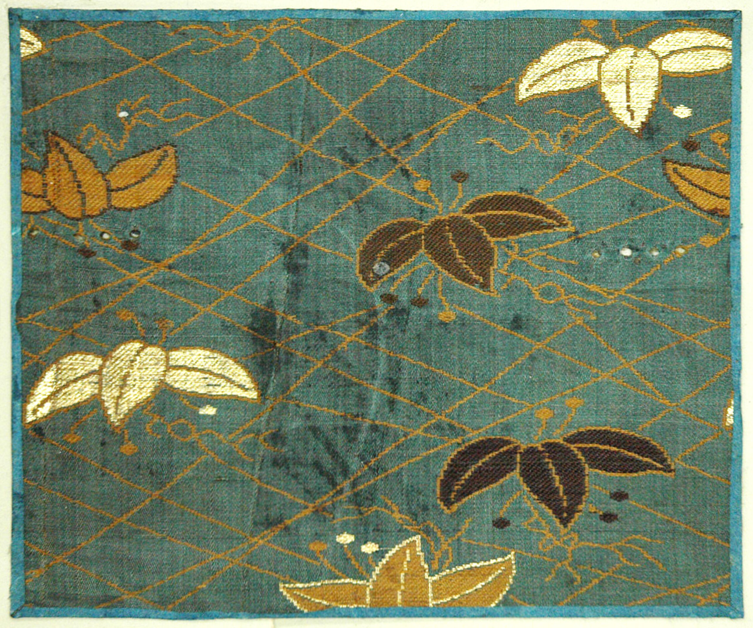 Gewebefragment, Gitterwerk und Blätter auf grauem Grund, Anonym, MAK Inv.nr. T 6155