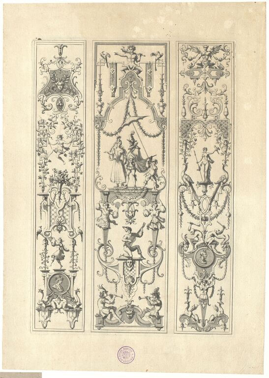 - Ornamentstich, Groteske, Blatt aus der Folge C aus den „Oeuvres de Jean Berain etc.“, herausgegeben von Thuret
