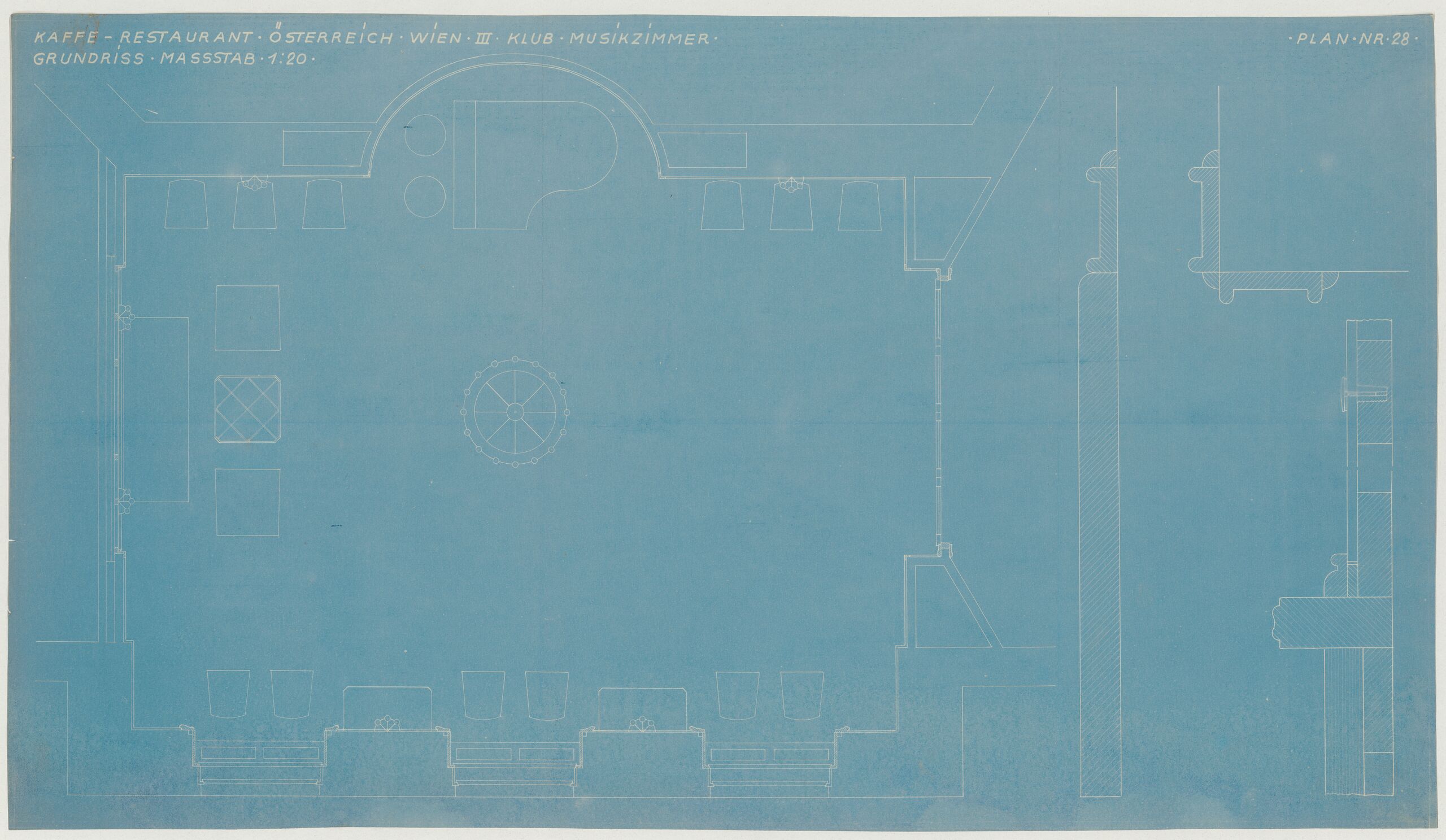 - Grundriss des Klub-Musikzimmers im Café-Restaurant Österreich, Wien III (vom Bearbeiter vergebener Titel)